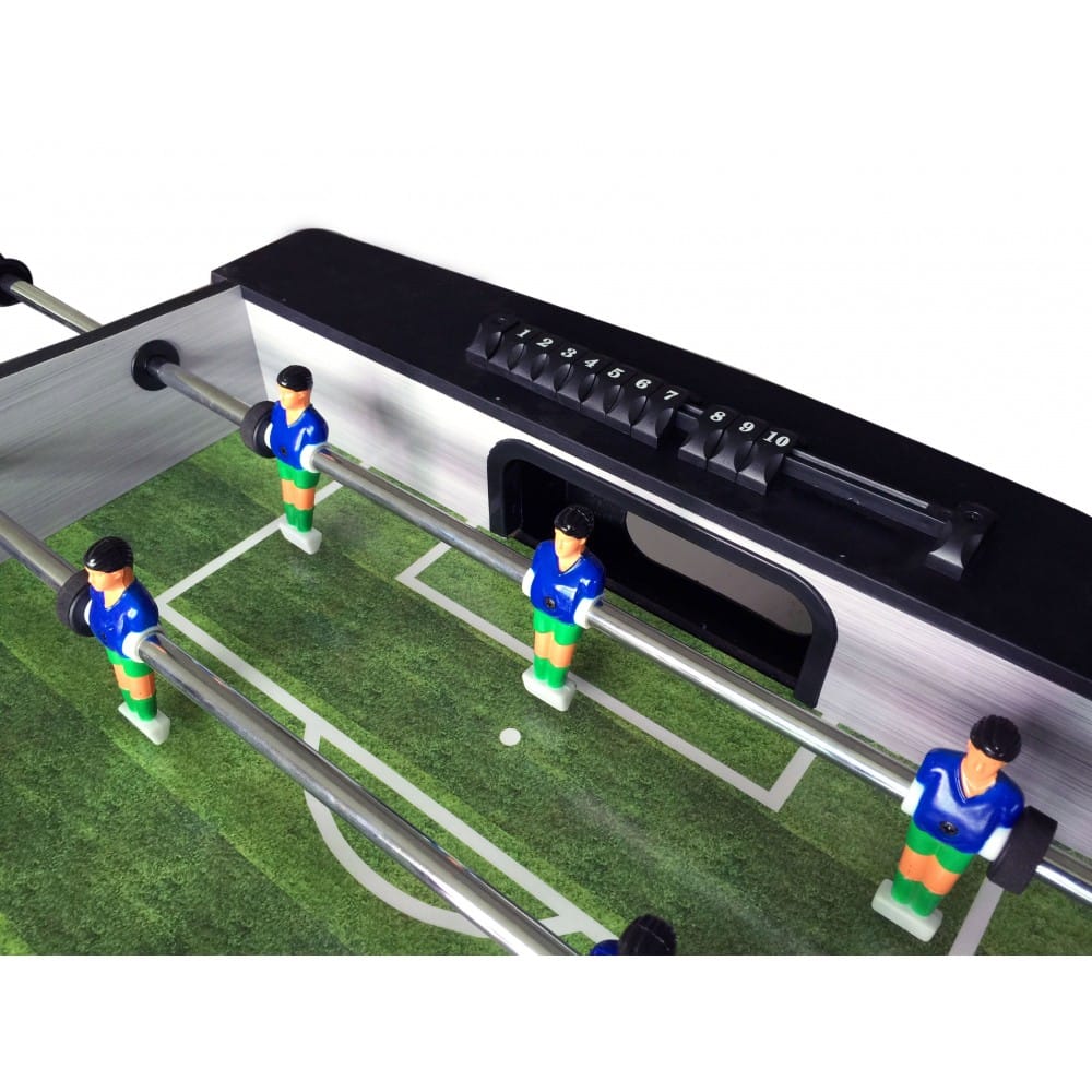 - Includes manual slide scoring systems and 2 high-quality foosballs