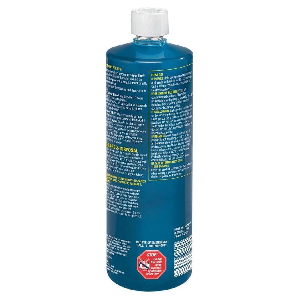 The GLB 71201 Super Blue Clarifier is an effective solution for achieving crystal-clear pool water. This clarifier works by aggregating tiny particles, making it easier for your pool filter to remove them, thus improving water clarity. Each case contains 24 bottles, each holding 8 ounces of the powerful formula, providing ample supply for regular maintenance.