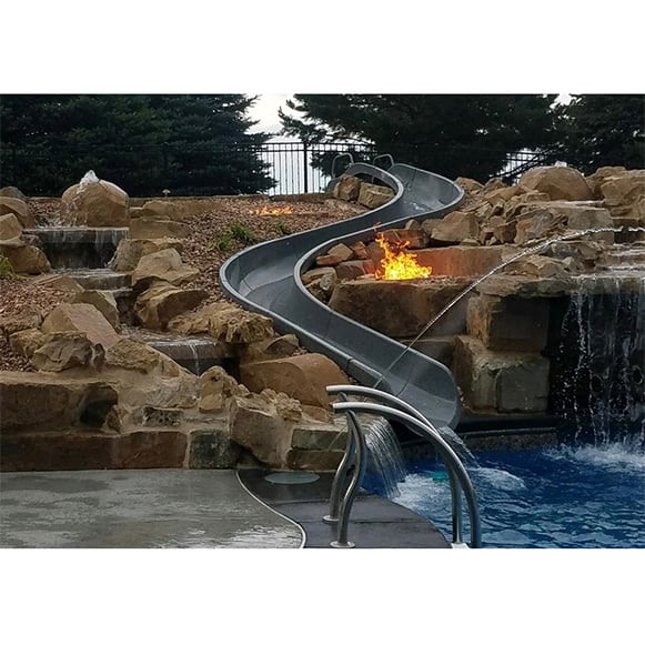 The SR Smith River Run Pool Slide Series is a collection of the most popular pool slide designs that have been configured through the Build Your Own Slide (BYOS2) custom landscape slide ordering process. The pre-designed BYOS2 Slide Kits are ready to order without the need to wait on a quote. If you are looking for a pre-designed landscape slide to fit your backyard oasis, then a River Run pool slide is the perfect choice.