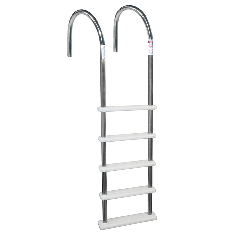 This in-pool ladder is designed to fit up to 54-in deep pools. The base of the ladder pivots to conform to sloping pool bottoms. It comes with white plastic flanges for secure deck mounting. All stainless steel hardware included. 1-year Limited Warranty.