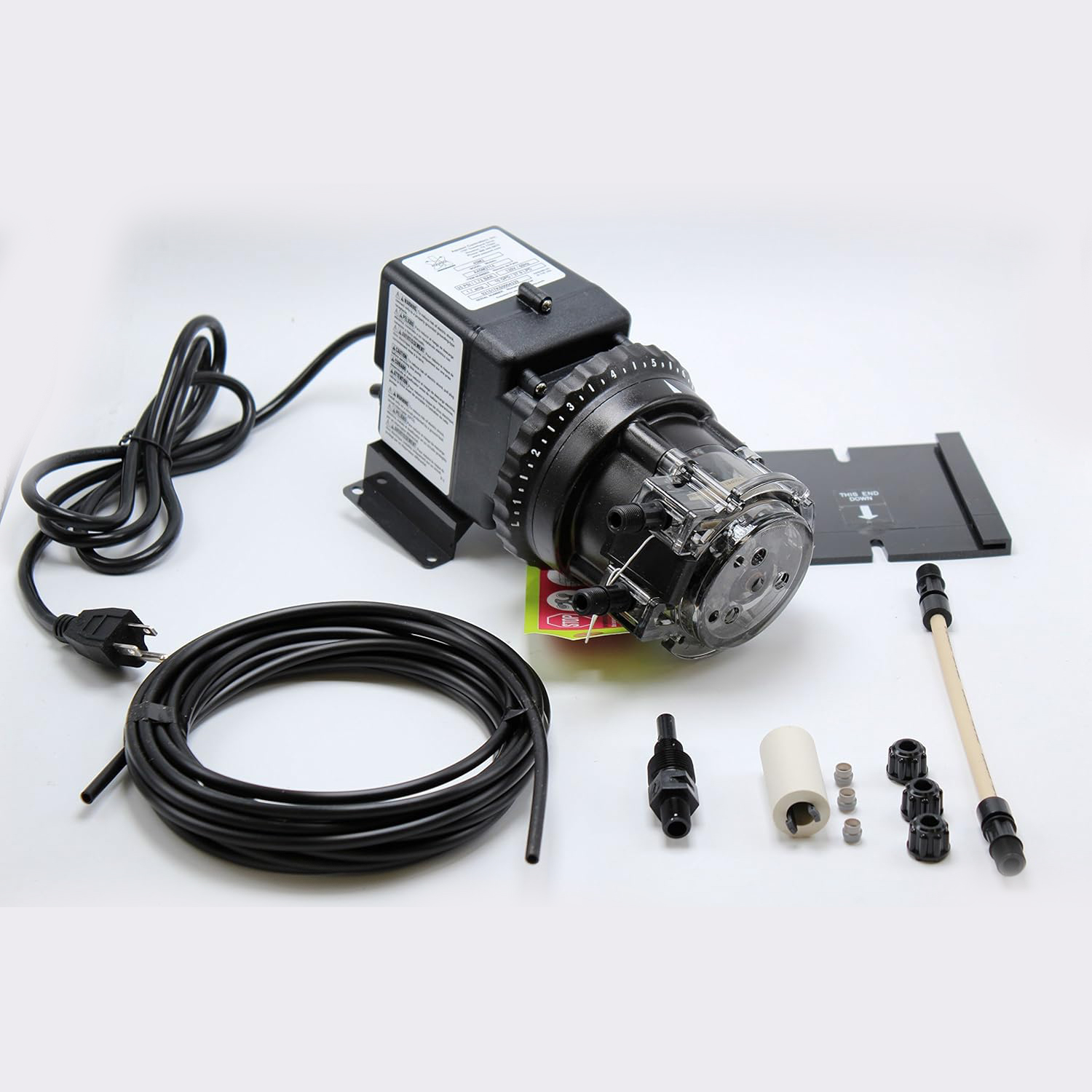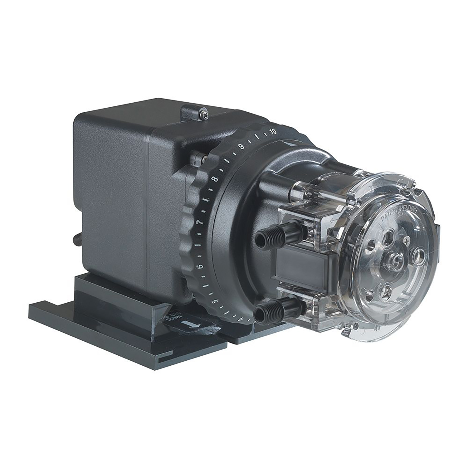 A standout feature of this model is the #5 Santoprene™ pump tube, crafted with single-piece construction. The over-molded tube fitting enhances structural integrity, minimizes wear, and creates a stronger, leak-resistant connection—significantly extending service life even under continuous operation. This thoughtful design reduces downtime and supports consistent delivery of chemical solutions across varying flow conditions.