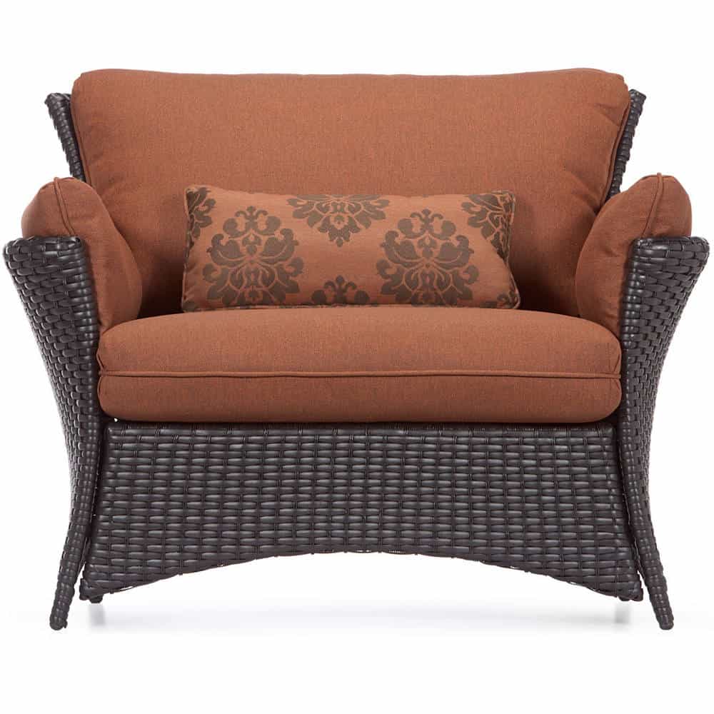 - CLASSIC SMALL SPACE DESIGN: The Strathmere Collection by Hanover is designed for ultimate relaxation. The 2-piece set includes an oversized armchair and ottoman with a terracotta lumbar pillow. Perfect addition to your patio, yard, deck, or porch.