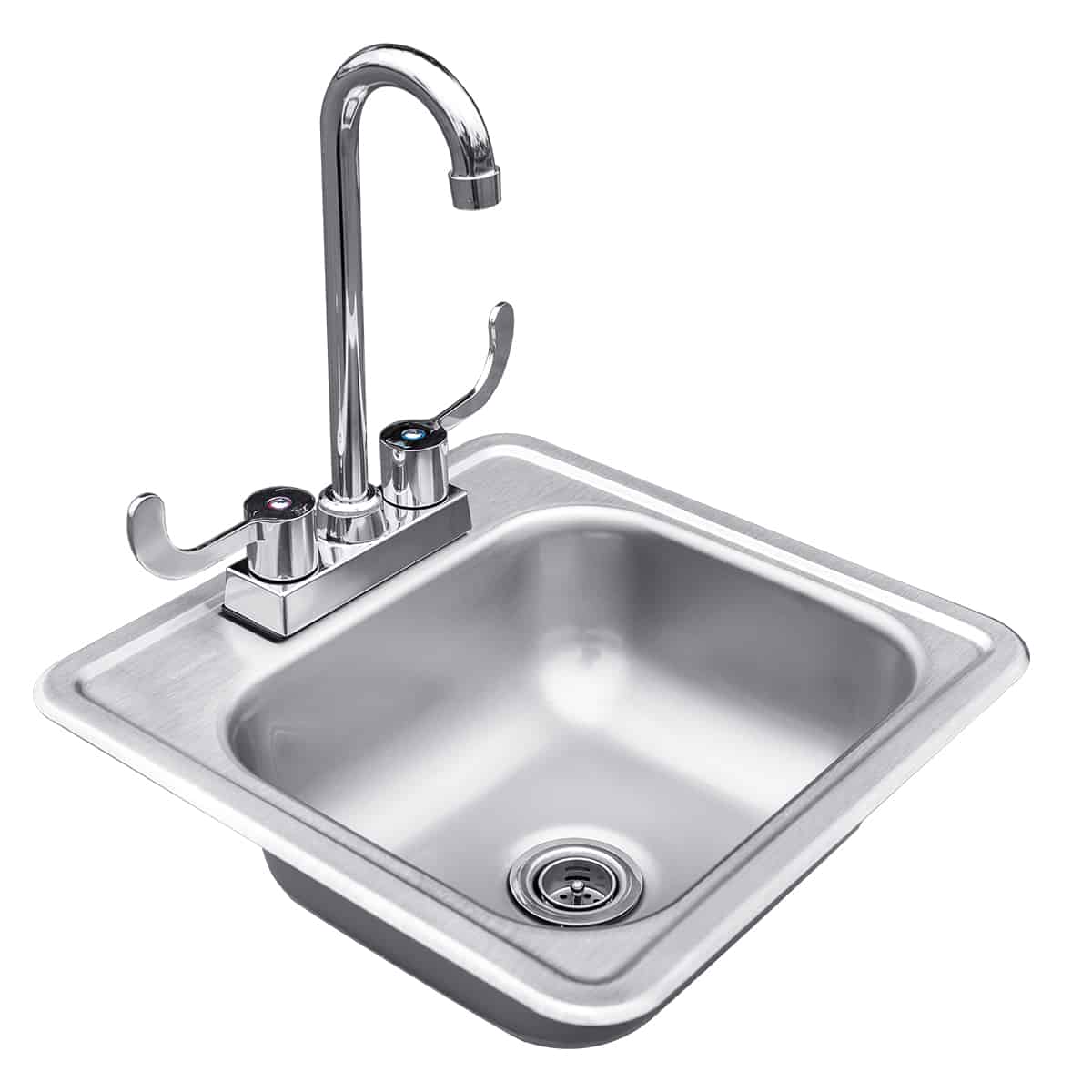 Keep your outdoor kitchen clean with the useful Summerset 15″ Stainless Steel Drop-in Sink with Hot/Cold Faucet. With built-in design and easy drop-in installation, this sink is a simple upgrade to any outdoor cooking area. Featuring a large 15”x15”x6” basin, conveniently keep cooking utensils and dishes clean without having to go inside. The stainless steel construction outlasts inferior brand designs, and it includes a double handle valve, chrome plated faucet, and a stopper/strainer for added versatility.