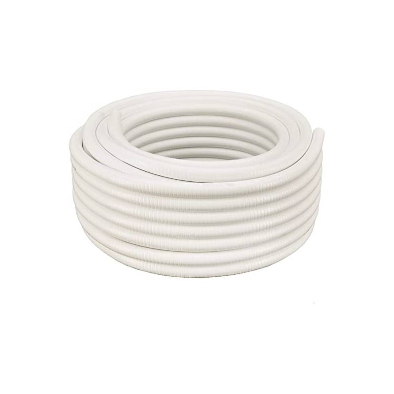 The Superflex S-100WH White Flexible PVC Pipe, commonly referred to as flex tubing, spa tubing, flexible PVC, and spa flex is perfect for use with pools and spas, drains, aquariums, irrigation, sprinkler lines and other applications where the utilization of rigid pipe is either not practical or not desirable. Strong and long lasting this hose is extremely flexible, and can easily be routed in any direction necessary without the use of multiple fittings, thus simplifying plumbing layouts and the installation of your job. It can be used in areas where space (for fittings) is limited and or in situations that simply will not accommodate rigid pipe. This Flexible PVC Pipe easily conforms to almost any contour, and experiences less heat loss than comparable copper or steel pipe. A rigid internal PVC spiral (helix) resists crushing and impact issues, and this PVC pipe can be used for above-ground or under ground installations (with proper cushioning).