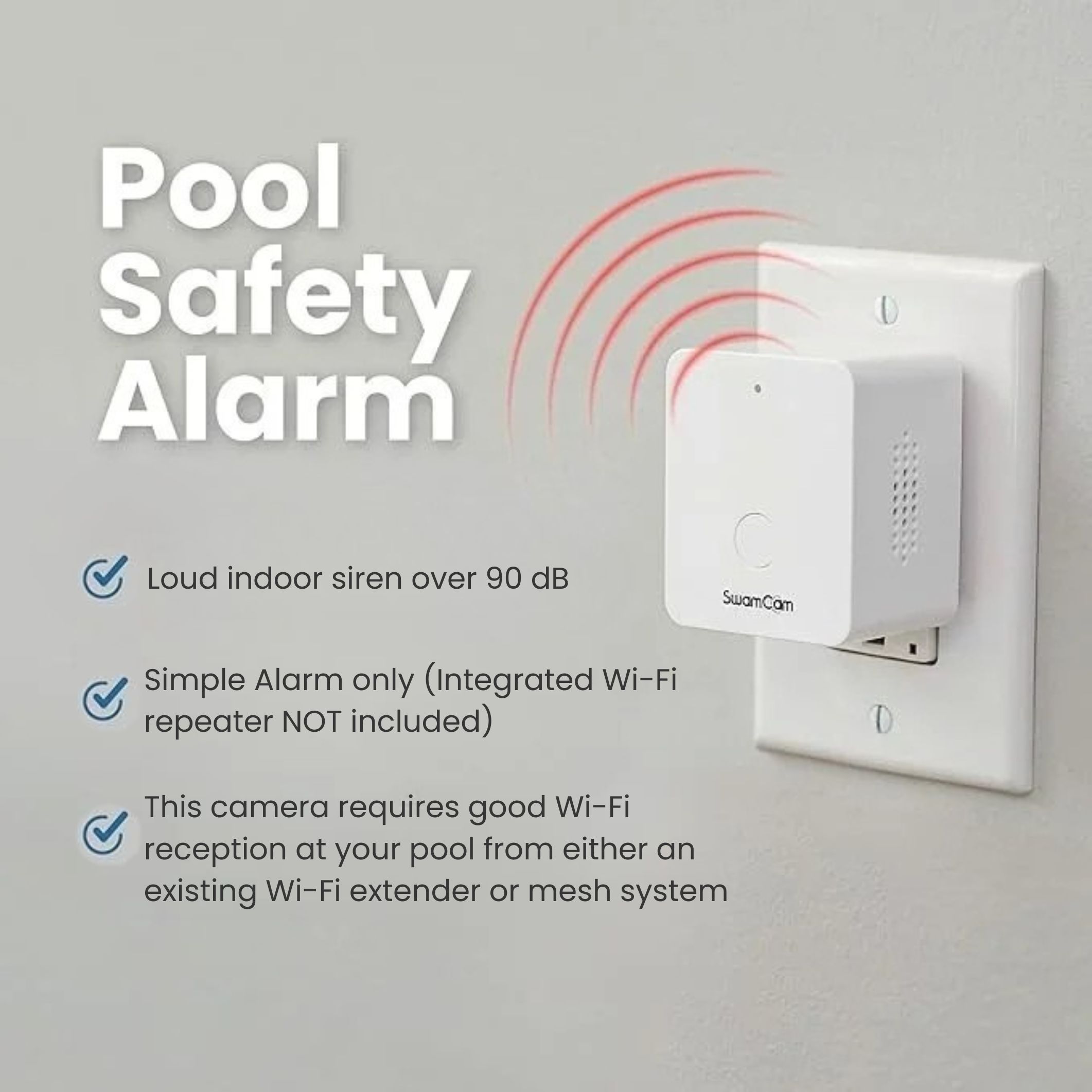 When someone unexpectedly enters the pool area, an alarm is sounded in three different locations: