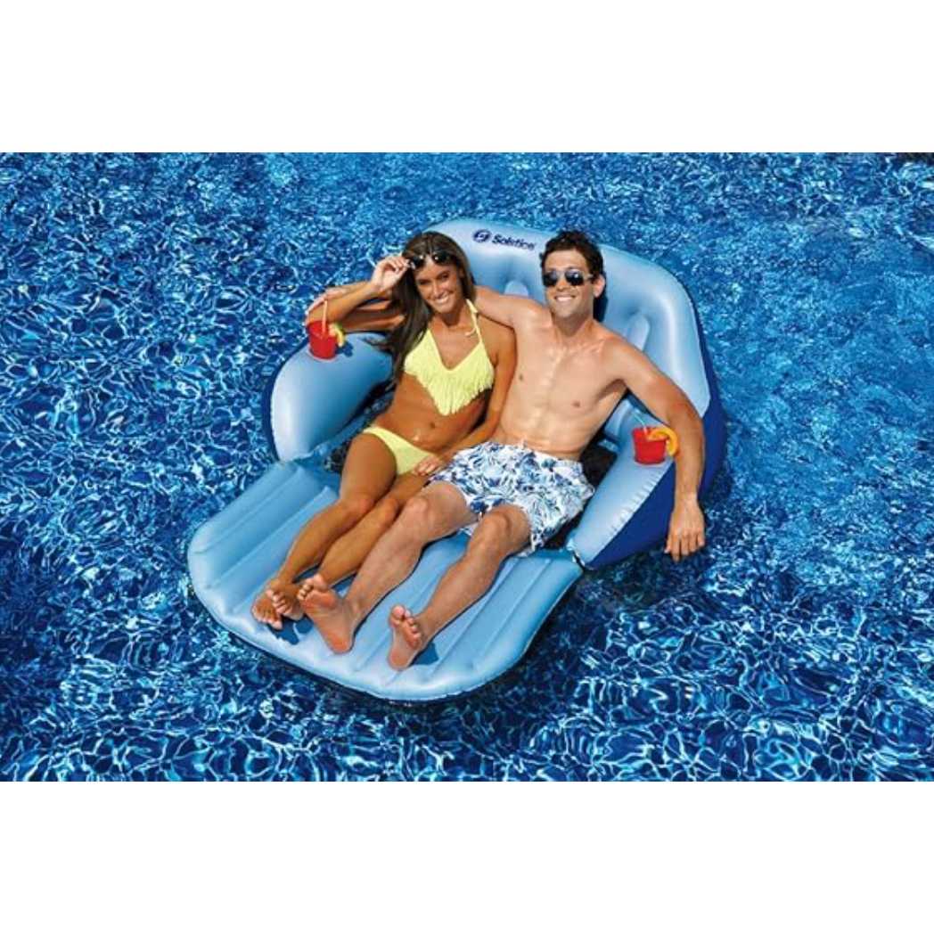 The Solstice Convertible Floating Duo Love Seat is designed for couples who enjoy spending time together in the water. This floating love seat can be converted for sitting face-to-face or side-by-side, offering versatility in how you relax. The sturdy construction and comfortable fabric ensure stability and comfort during use. It includes built-in cup holders for convenience, allowing you to enjoy your favorite drinks without leaving the seat. Whether it’s for a playful day in the sun or a tranquil float, this love seat is a fantastic addition to any pool.