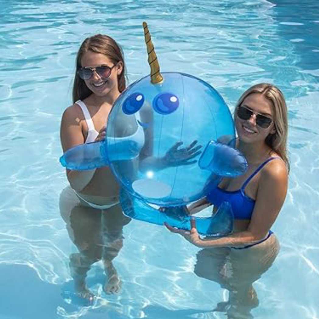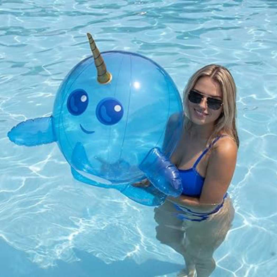 The Swimline 90011 Inflatable Narwahl Beach Ball brings a whimsical touch to your pool or beach experience. Featuring a charming narwahl design, this beach ball is perfect for kids and adults alike. Made from high-quality vinyl, it is durable and built to last through many fun-filled days. The playful design encourages imaginative play and adds a unique element to your summer activities. Easy to inflate and deflate, this beach ball is a delightful and portable addition to your poolside entertainment.