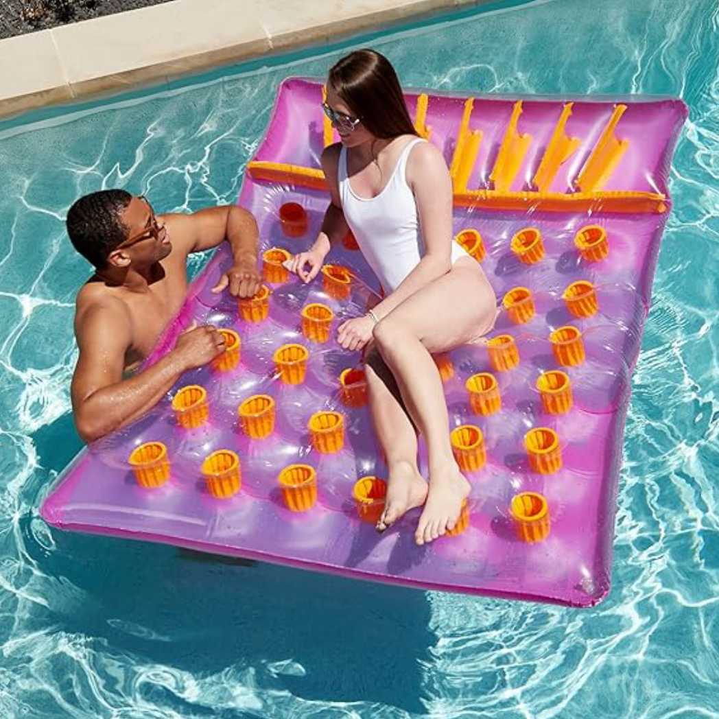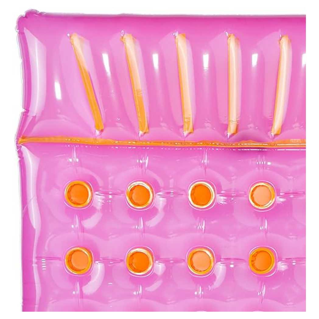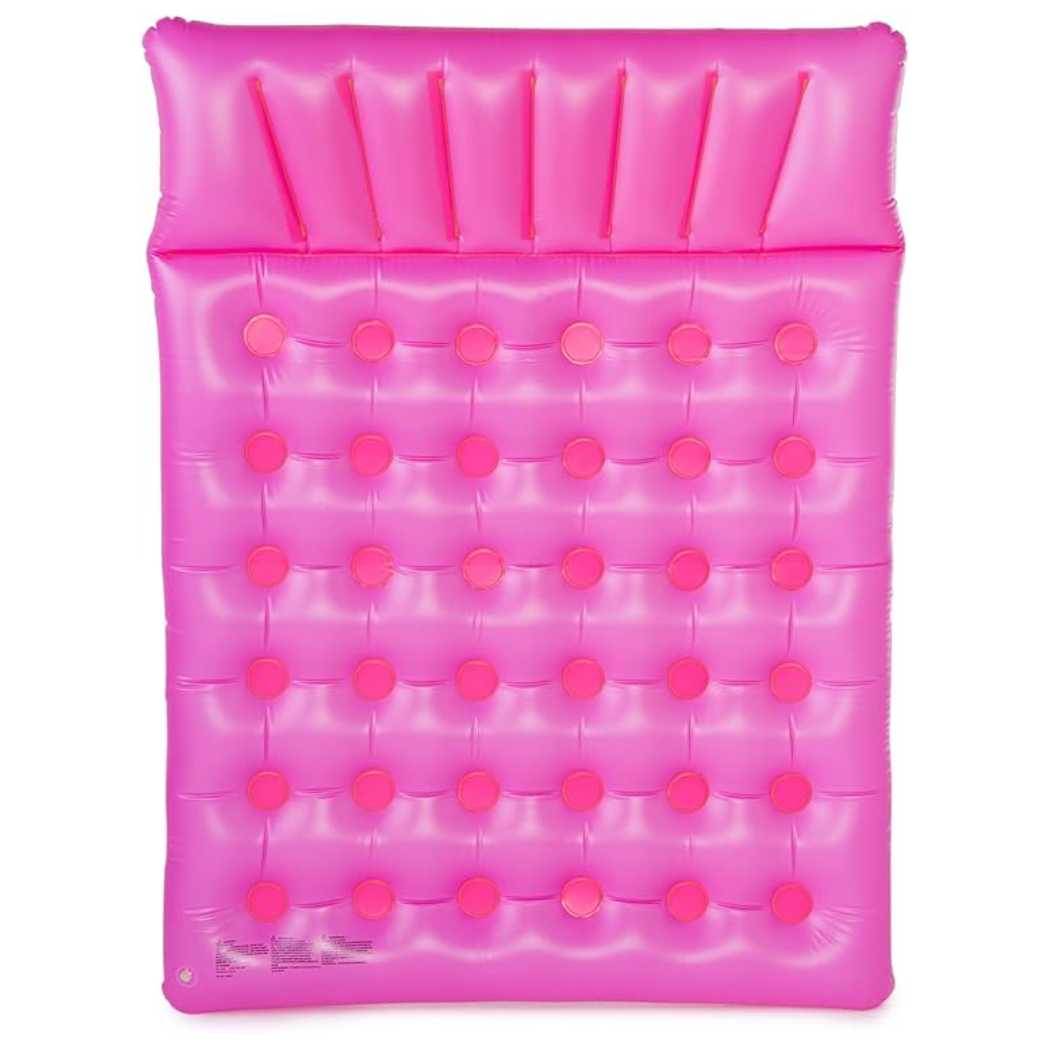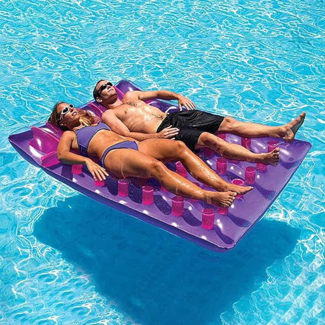 Enjoy pool time with a friend on the Two-Person Inflatable Purple French Mattress Float. This spacious float is designed to accommodate two people, offering comfort and relaxation. The French mattress design features multiple pockets for added support and stability. Made from high-quality vinyl, it is built to last through many seasons of fun. The eye-catching purple color adds a stylish touch to your pool. Easy to inflate and deflate, this float is perfect for couples or friends looking to lounge together.