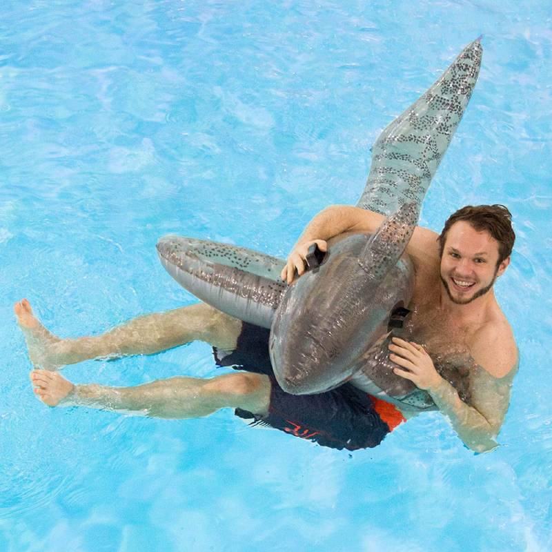 - 72″ Ride-on shark pool float.