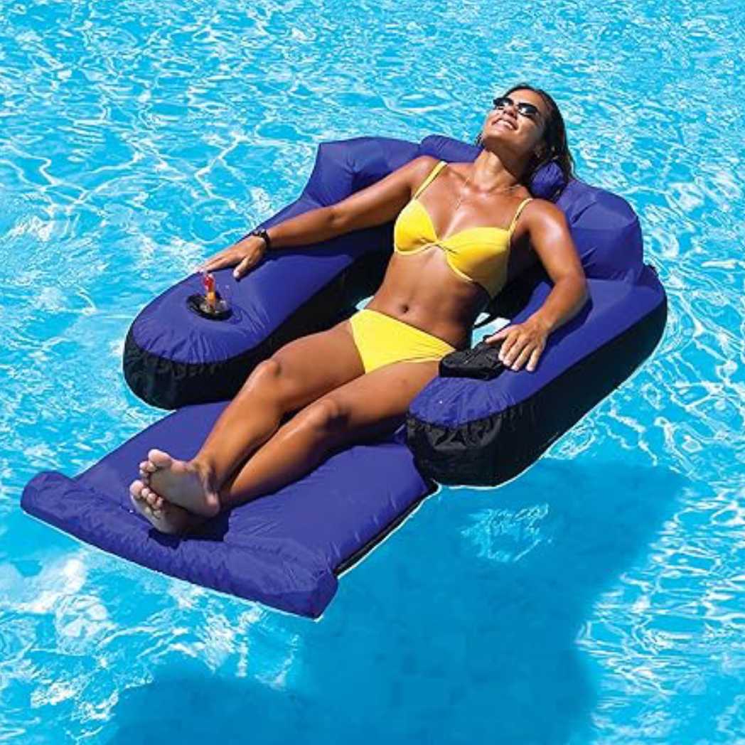 The Swimline 9047 Inflatable Nylon-Covered Lounger Float combines comfort and durability for an enhanced pool lounging experience. This float features a nylon cover that provides a soft, comfortable surface while adding extra durability. Its ergonomic design supports your body, ensuring relaxation and comfort. The lounger is built to withstand frequent use and exposure to pool chemicals. Easy to inflate and deflate, it’s perfect for those who seek a luxurious and durable float for their pool time.