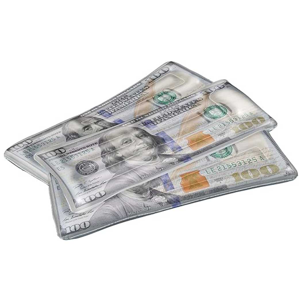 - Design: Shaped like a $100 bill with Ben Franklin