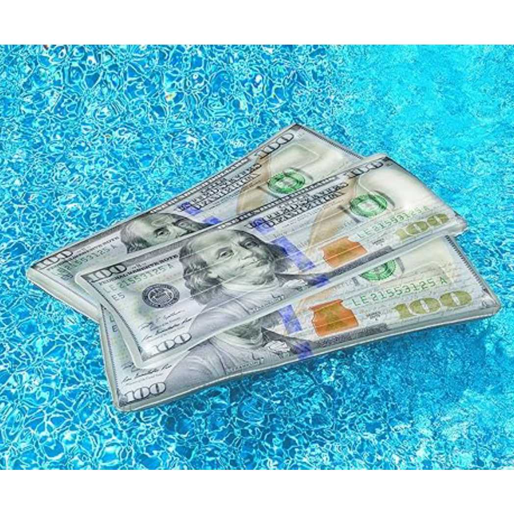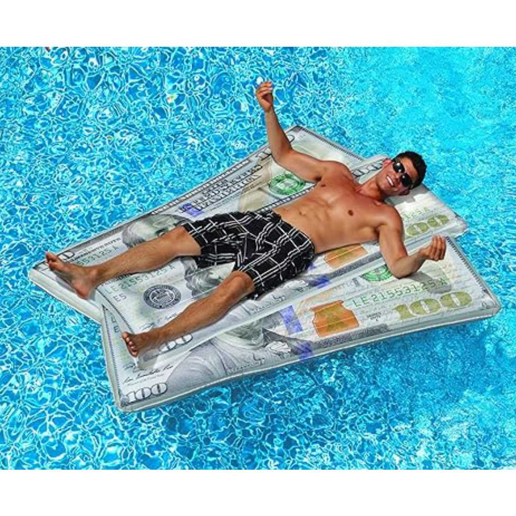 The Inflatable Ben Franklin Money Mattress Float adds a humorous and luxurious twist to your pool experience. Shaped like a $100 bill featuring Ben Franklin, this float is sure to be a hit at any pool party. Made from high-quality vinyl, it is durable and designed for comfort. The large size provides ample space for lounging and relaxing. Easy to inflate and deflate, this money mattress float is a fun and unique addition to your pool accessories.