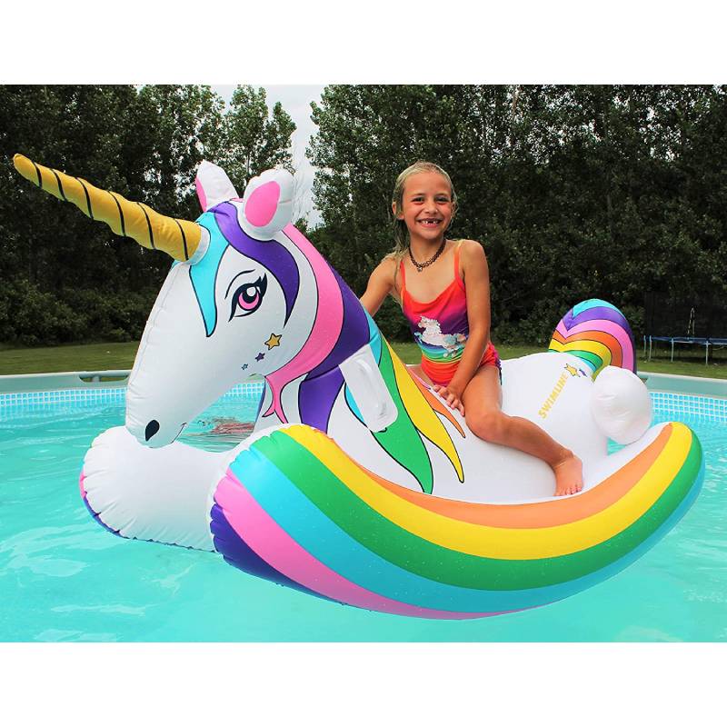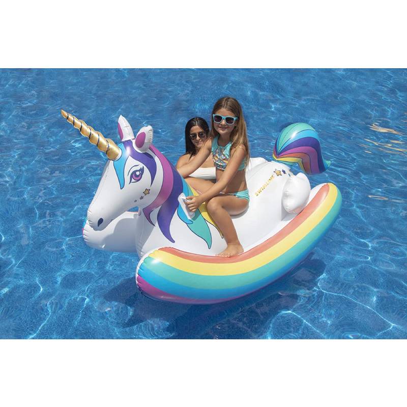 - The Swimline Unicorn rocker fits 1-2 riders and is equipped with 2 grab handles