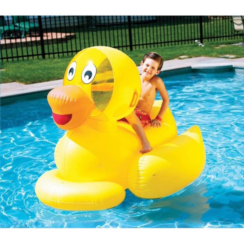 The Swimline 9062 is an Inflatable Giant Ducky Pool Float. The see-thru head allows kids to see where they are going and is made of heavy duty vinyl. Inflatable swimming pool products make any pool or aquatic activity more enjoyable, and kids will have a blast floating around on their own Giant Ducky Pool Float. Too Cute!