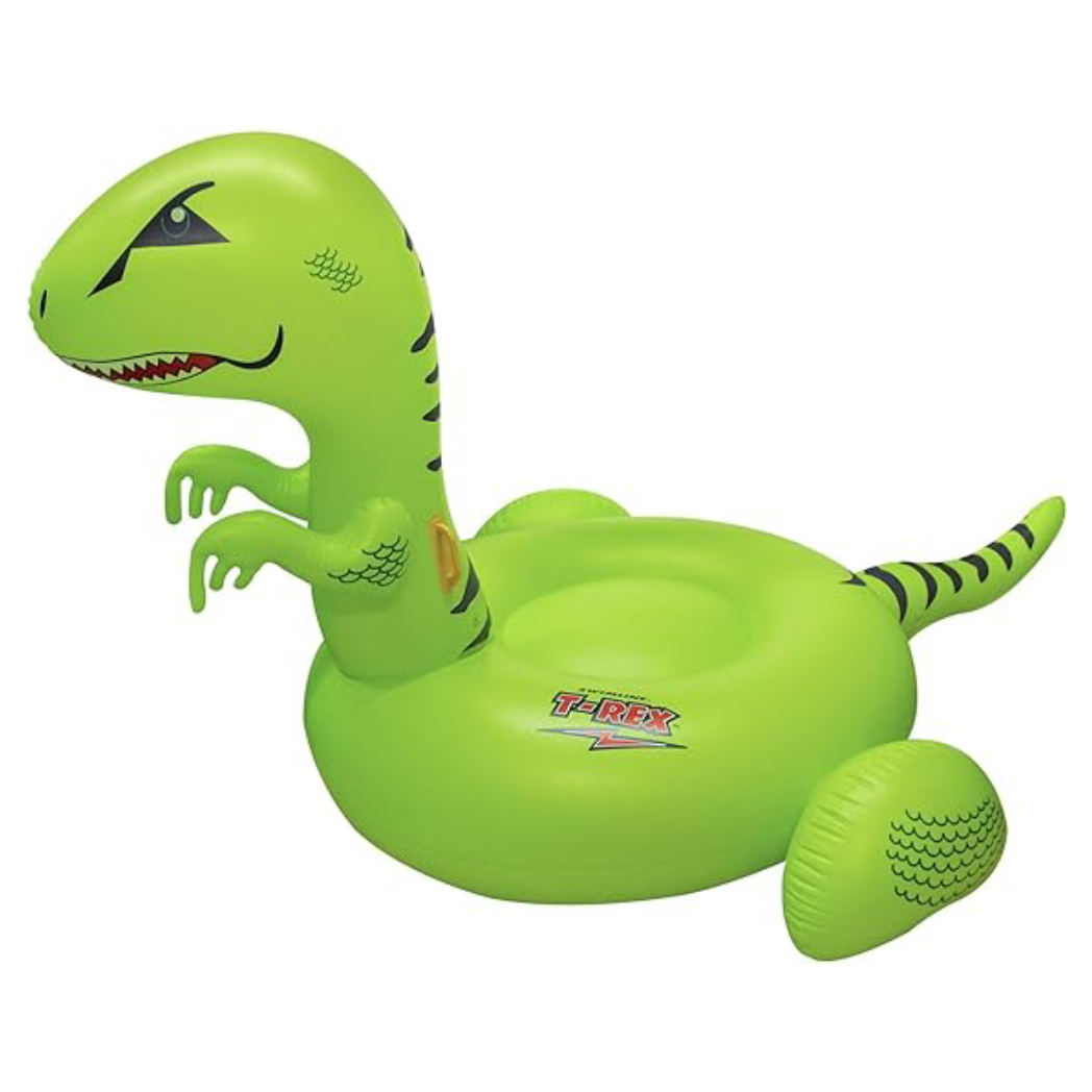 The Swimline 90624 Inflatable Large Ride-On T-Rex Float is perfect for those who love a bit of adventure in the pool. Shaped like a mighty T-Rex, this float offers an exciting ride for both kids and adults. The detailed design and vibrant colors make it a standout piece at any pool gathering. Made from high-quality vinyl, it is built to endure active play and frequent use. Easy to inflate and deflate, this T-Rex float is sure to bring prehistoric fun to your pool.