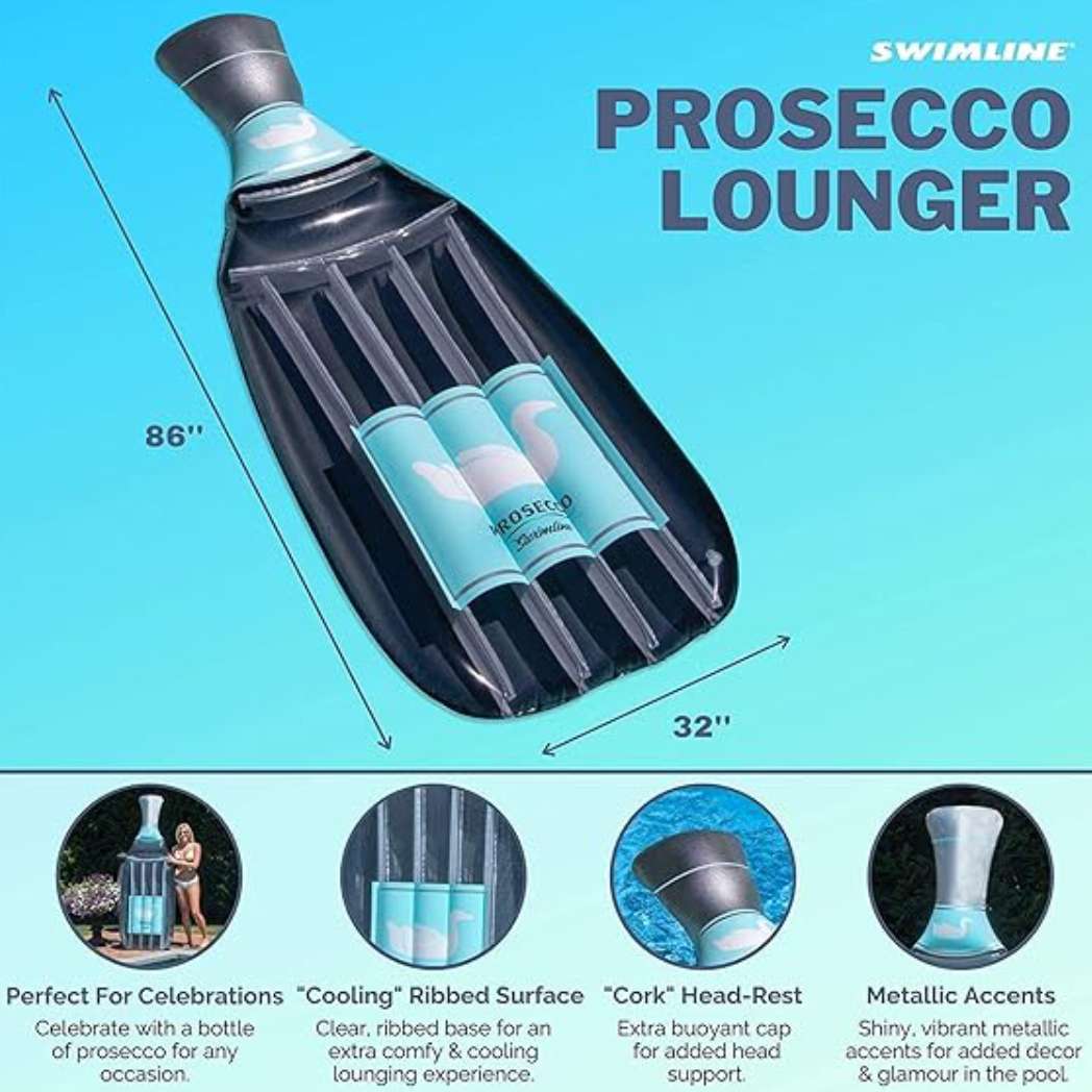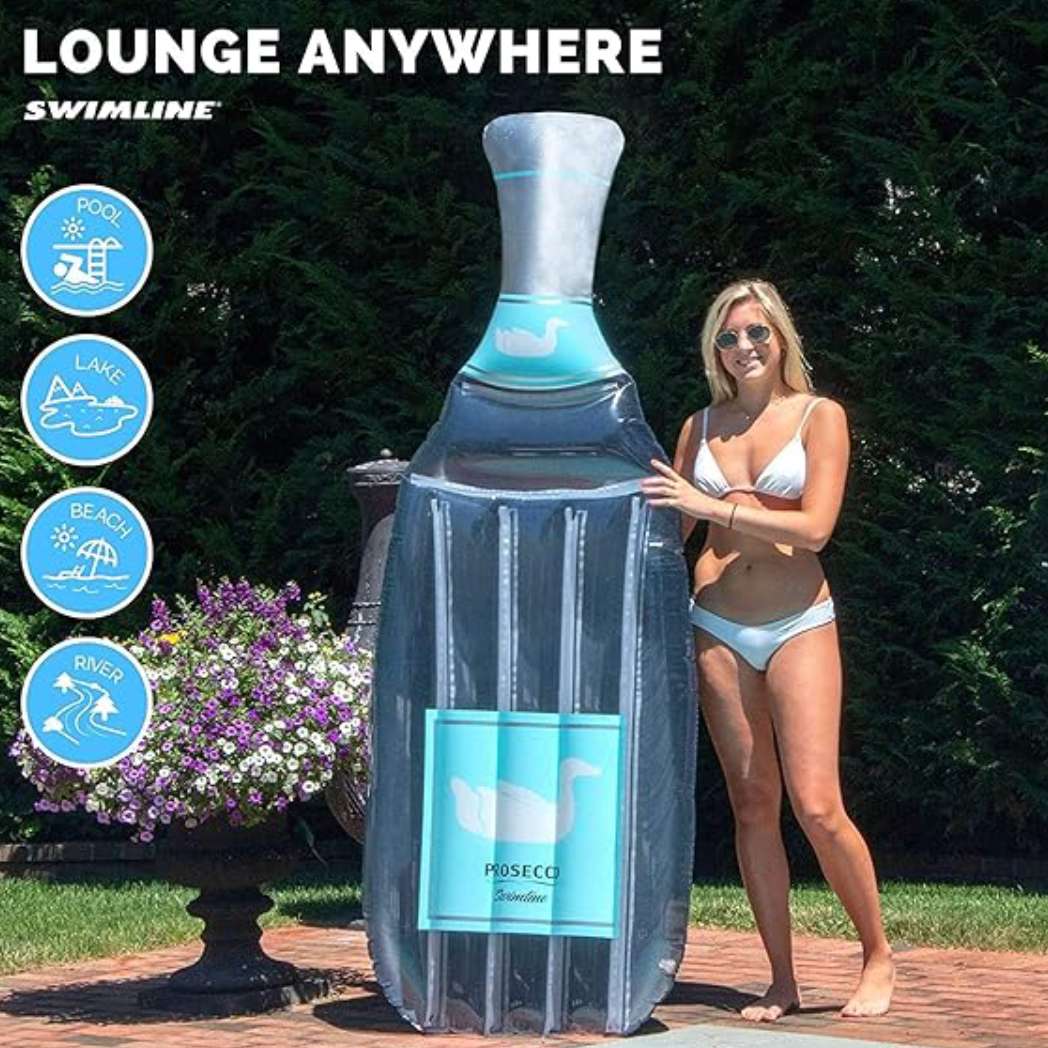 Swimline 90650 Inflatable Prosecco Wine Bottle Float Features: