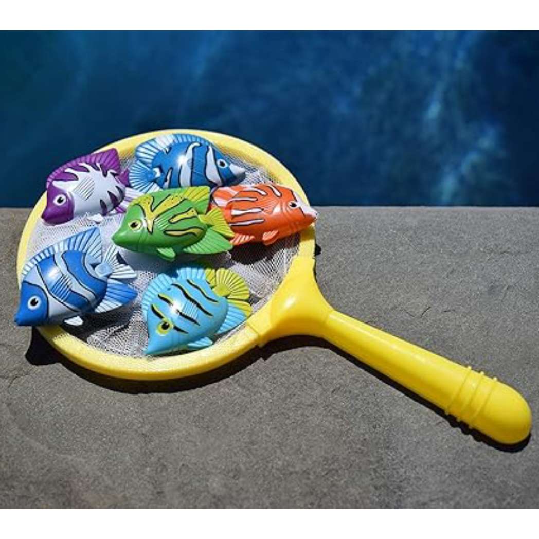 This Pack of 6 Fish Catch Dive Game is a fun and engaging activity for kids in the pool. This game includes six colorful fish that sink to the bottom, challenging swimmers to dive and retrieve them. Made from durable, non-toxic materials, these fish are safe for children and built to last. The vibrant colors make them easy to spot underwater. Perfect for developing swimming skills and encouraging active play, this dive game is a hit at any pool party.