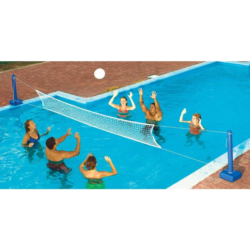 - Features: Jump, spike, and set yourself up for fun this summer. Ideal for above grounds pools with decks or in-ground pools. Fits pools up to 20 feet in diameter. Included real feel volleyball gives you the ultimate volleyball experience.