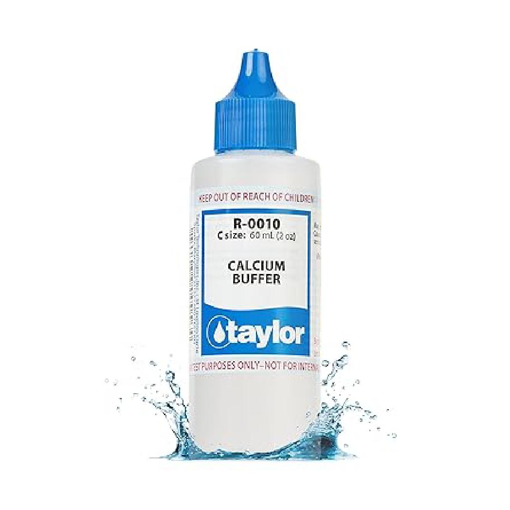 The Taylor Calcium Buffer Reagent #10, available in a 2 oz. bottle, is perfect for routine testing of calcium hardness in pool water. This reagent helps maintain proper calcium levels, preventing issues like corrosion and scaling that can damage pool surfaces and equipment. Suitable for residential and commercial pools, it offers accurate and reliable results that support balanced water chemistry. With a convenient size for regular use, this reagent is an essential part of pool care, simplifying the testing process and ensuring safe swimming conditions. Compatible with Taylor test kits, the R-0010-C is a practical choice for effective pool management.