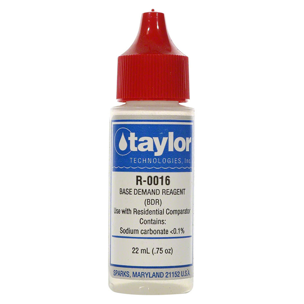 The Taylor R-0016-A Base Demand Reagent is a 3/4 oz. solution designed to aid in adjusting water pH levels by determining the exact amount of base needed to achieve balance. Essential for maintaining safe and comfortable water conditions, this reagent simplifies the process of pH management in pools and spas.