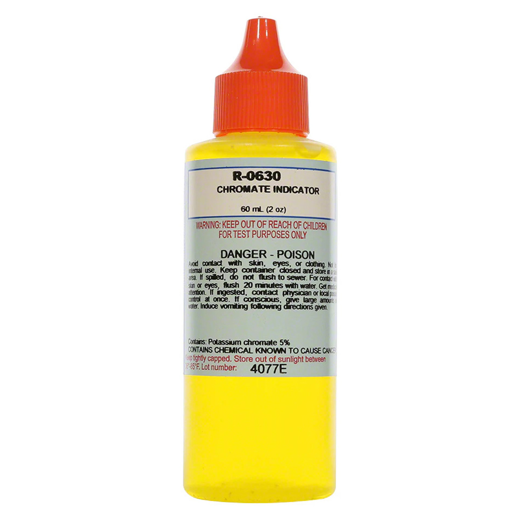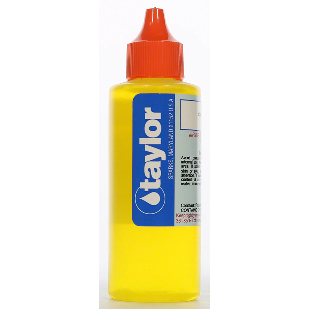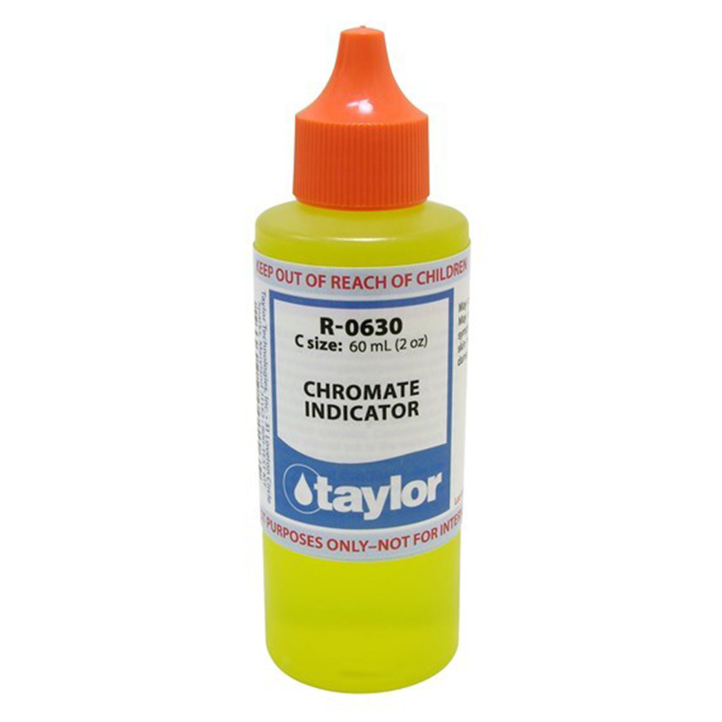 The Taylor R-0630-C Chromate Indicator Reagent is a 2 oz. reagent specifically formulated to detect hardness levels in water, commonly used in pool, spa, and industrial applications. This chromate-based reagent is reliable for use in testing kits to identify calcium and magnesium ions, allowing users to assess and maintain proper water balance. Designed for accuracy, the Taylor R-0630-C ensures water hardness is effectively monitored, supporting longer-lasting equipment and enhanced water quality.