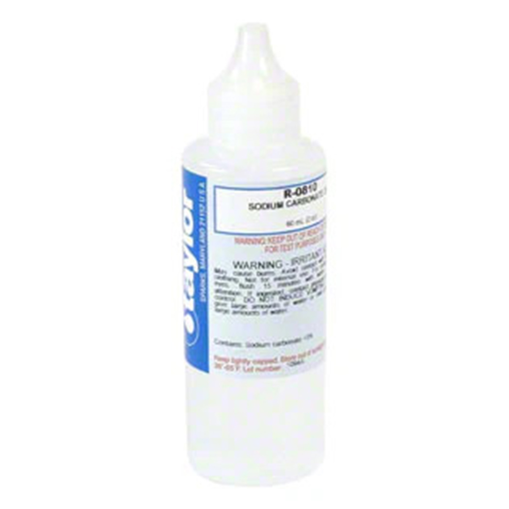 The Taylor R-0810-C Sodium Carbonate Reagent, available in a 2 oz. bottle, is a key component for accurate testing of alkalinity levels in pool and spa water. This reagent is used to adjust the pH during alkalinity testing, ensuring precise readings for total alkalinity measurement. By buffering the sample, it enhances the accuracy of the test, helping pool owners and water care professionals maintain proper water chemistry and prevent issues related to fluctuating pH levels.