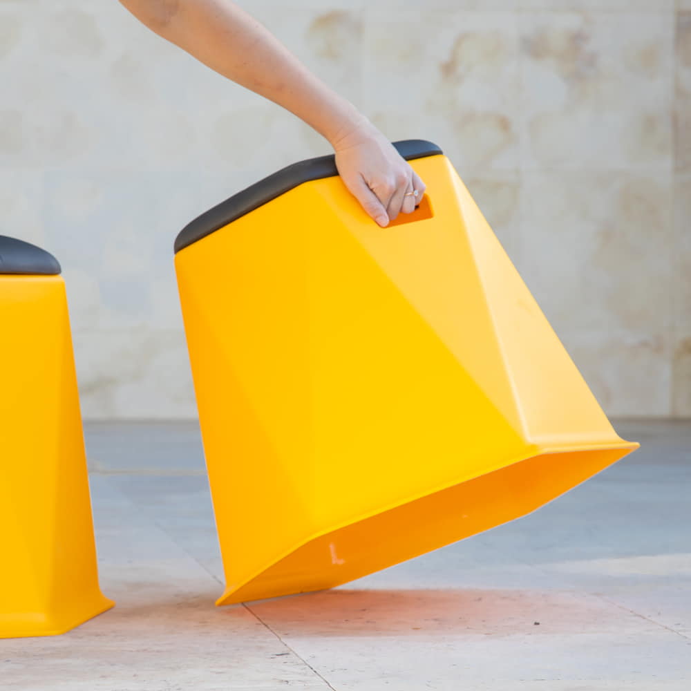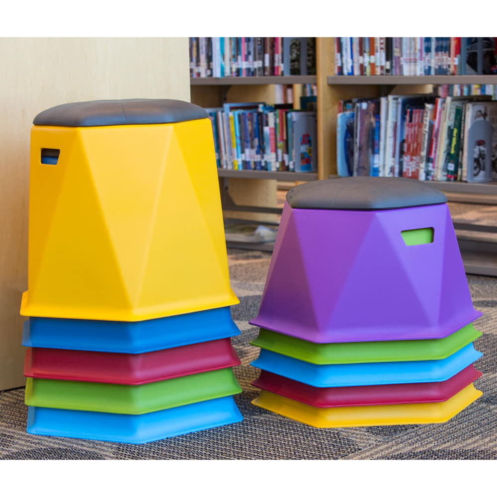 - Twisted Hex Stools are stackable