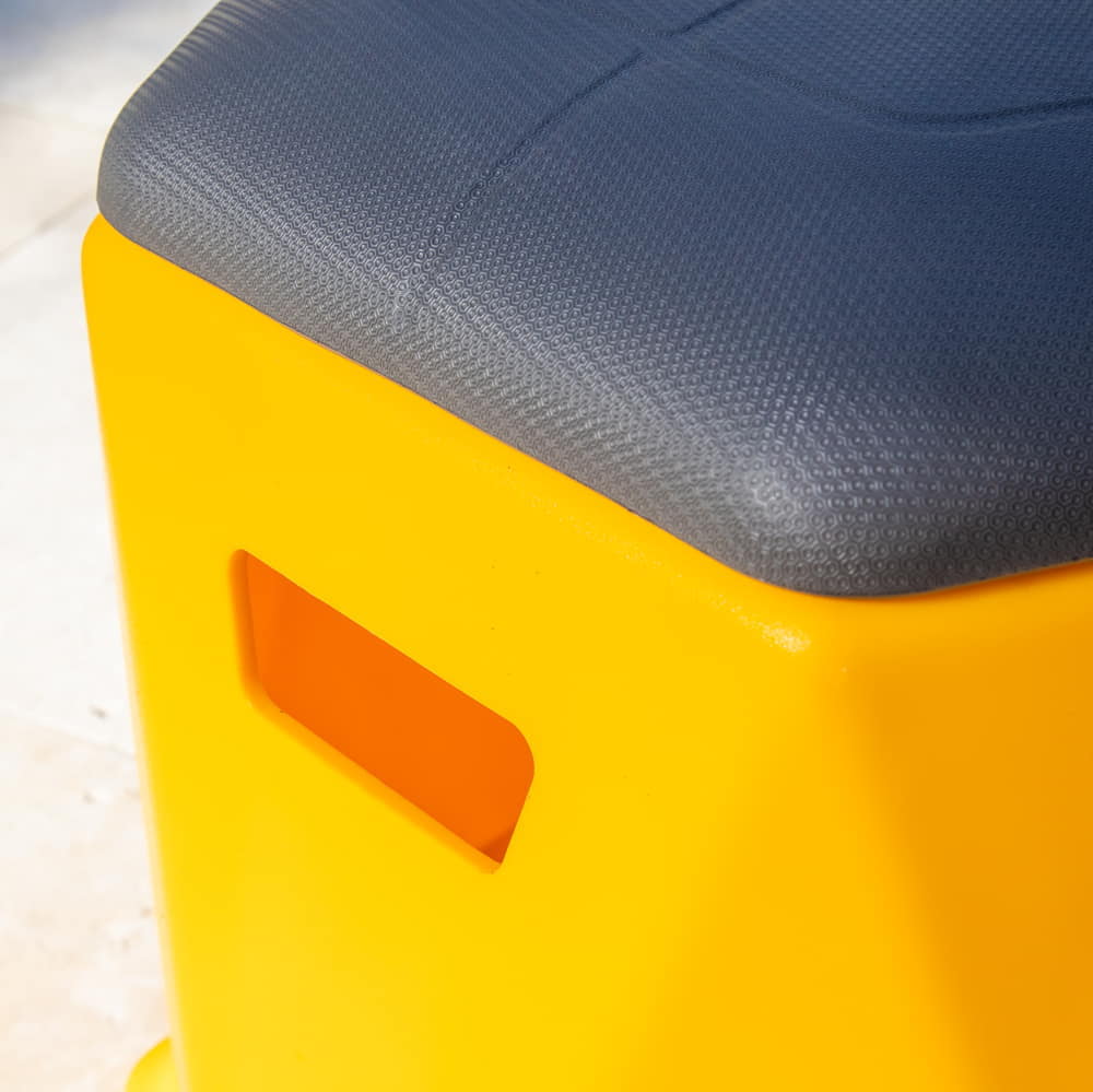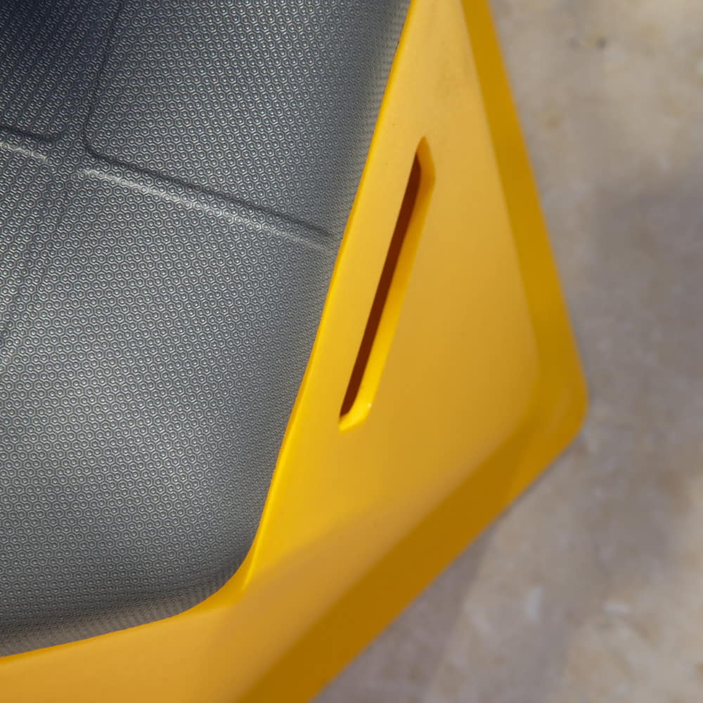 Twist and Shout…This stacking seat has a twist and it’s more than just the cool looks. This stool can be used in a swimming pool or as seating in a school. Use it here or use it there. Use it inside, outside, or anywhere. Twisted Hex Stools are stackable and all heights can be stacked together. Lightweight and easy to carry. Supports up to 350 lbs. The open bottom and dual hand holds allows you to place the stool anywhere on the tanning ledge in an instant, then easily remove it from the pool and use it on the patio for extra seating.
