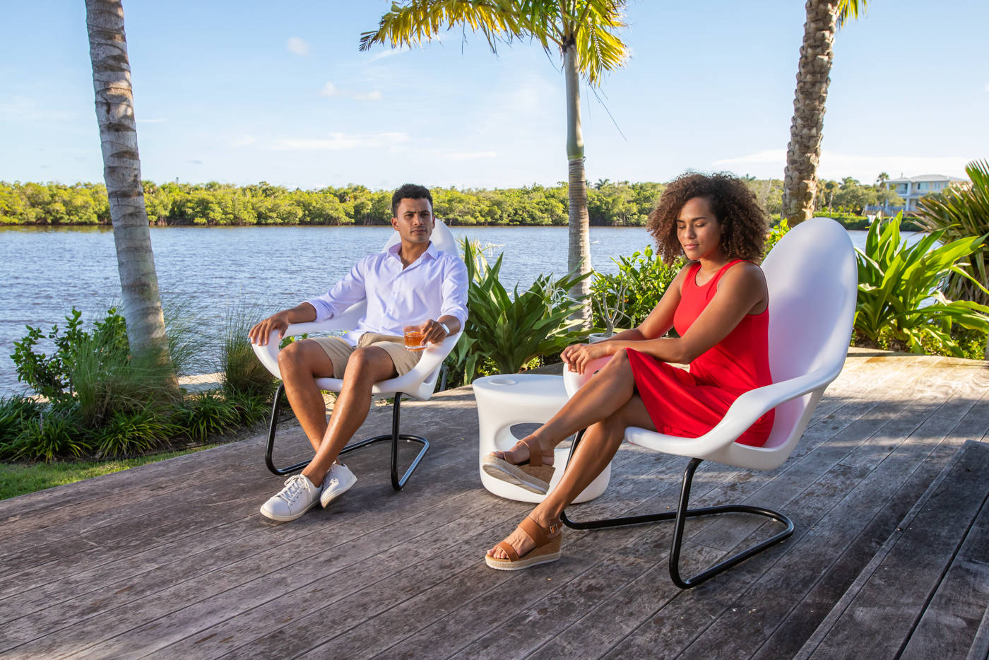 Take a seat in the Woosah chair and let your shoulders and arms relax. Now take a deep breath and say “Wooooo-saaaaah” while slowly exhaling. Repeat unit you feel the tension wash away. The combination of the ergonomic contouring of the seat and the slight bounce designed into the base give you the most comfortable outdoor chair in the world. The seat is made with polyethylene material for supreme impact strength and low maintenance. The base is made with heavy gauge stainless steel finished with an outdoor rated powder coating. Woosah is designed to give you a very slight and soothing bounce movement that everyone finds to be ultra-relaxing. Bring on the sun, sand, snow, salt, and rain…this chair can take it.