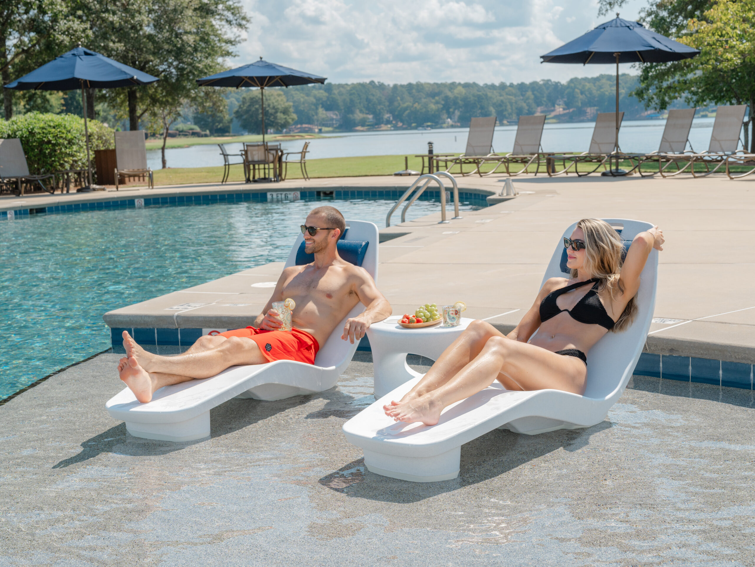 Weighing in at just 18lbs, this lightweight table is easy to maneuver. It’s compact design and sturdy construction holds up to 500lbs. Simply place it on a tanning ledge and watch as the Amped Table effortlessly settles into place. To remove, easily lift the table from the pool and the water immediately drains from the core – no fooling around with tools and drain plugs! Its flow through design allows water to pass through its center for a contemporary look. The Amped Table Splash is much lighter than competitors’ water-filled tables and is easier to move for pool cleaning or resetting the space.