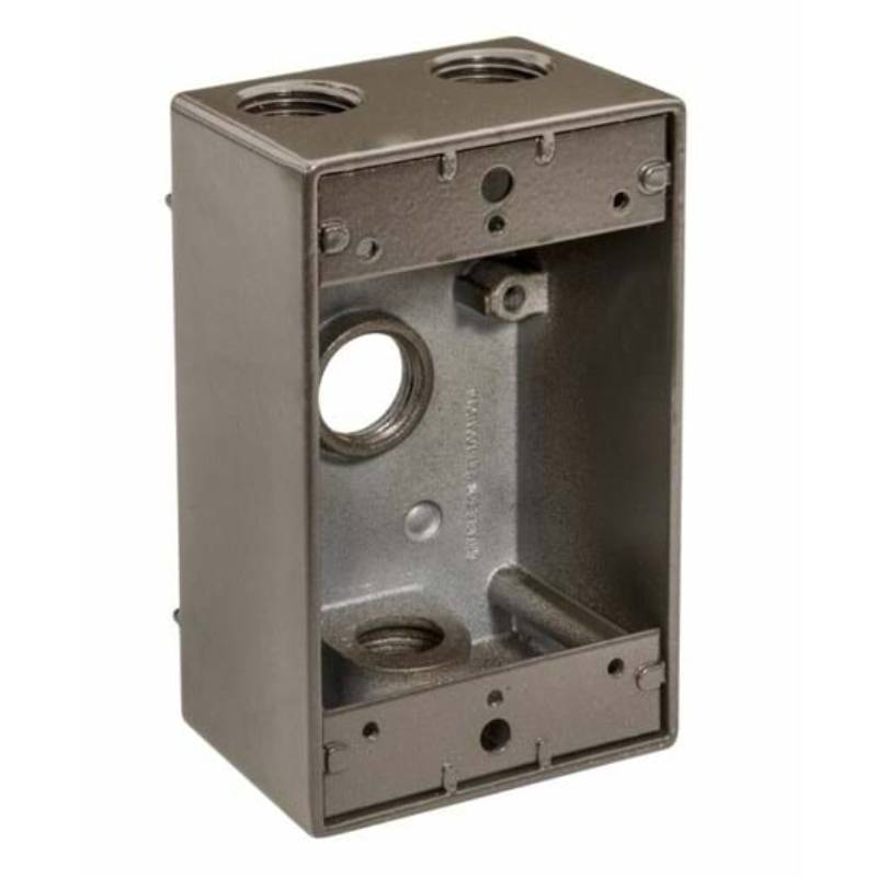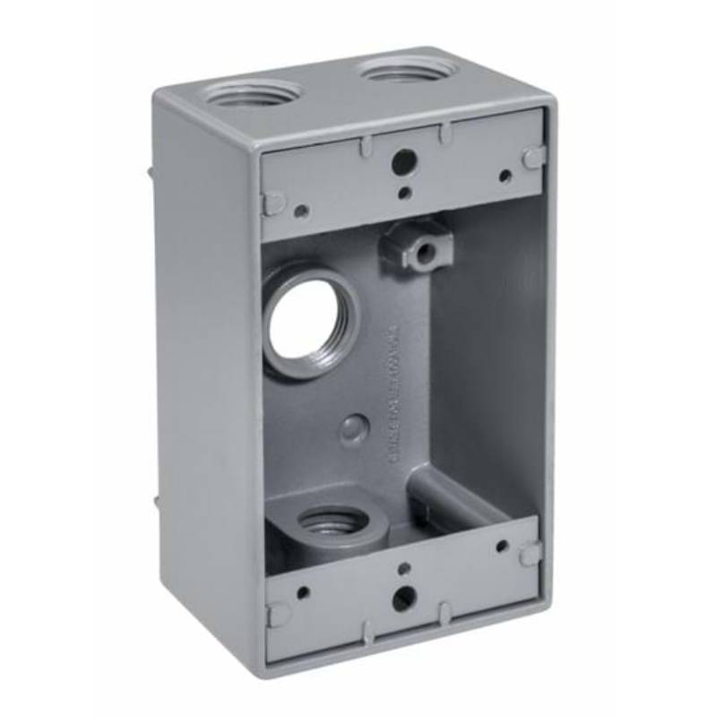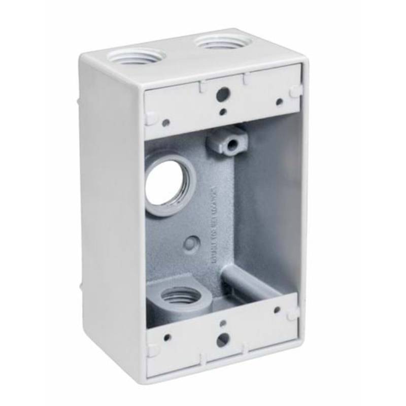 Topaz’s Weatherproof Single Gang Boxes are designed for use with lighting fixtures, switches and other electrical devices. Fabricated from strong, durable and lightweight copper free aluminum and available in 3, 4 and 5 holes, side opening models with an 18 cubic inch capacity. Precision manufactured for optimum performance and longevity, premium powder coat finish ensures integrity; knockouts range from 1/2” to 1”. Available in gray, bronze and white; UL listed, 2011 NEC and NEMA 3R compliant. Point of purchase packaging promotes self merchandising and easy display.