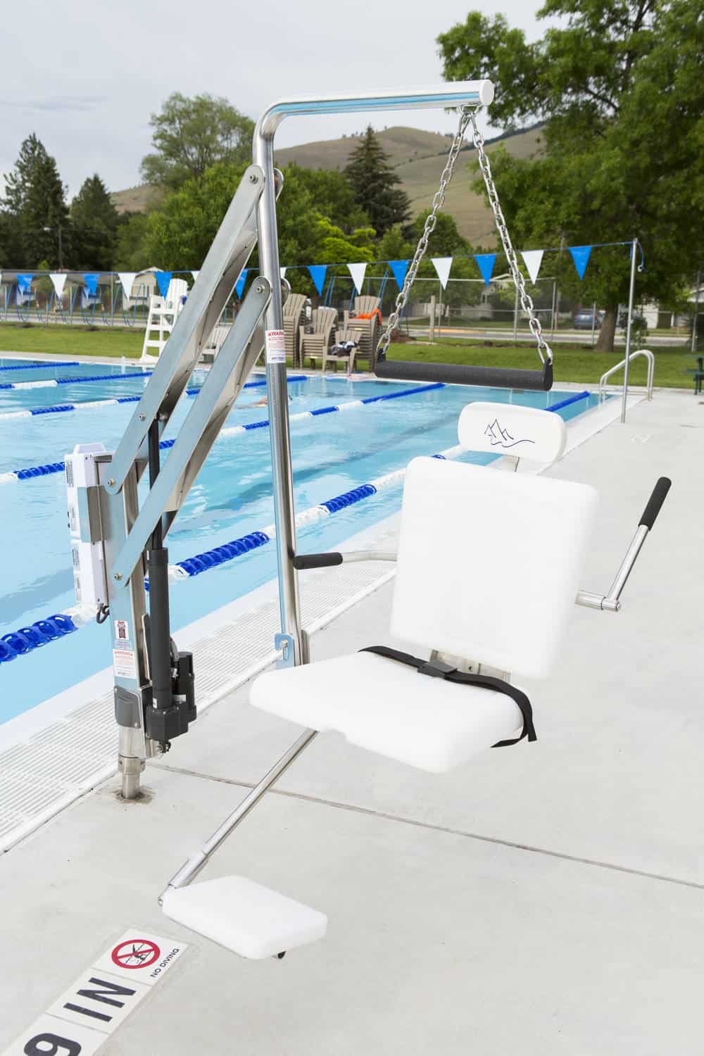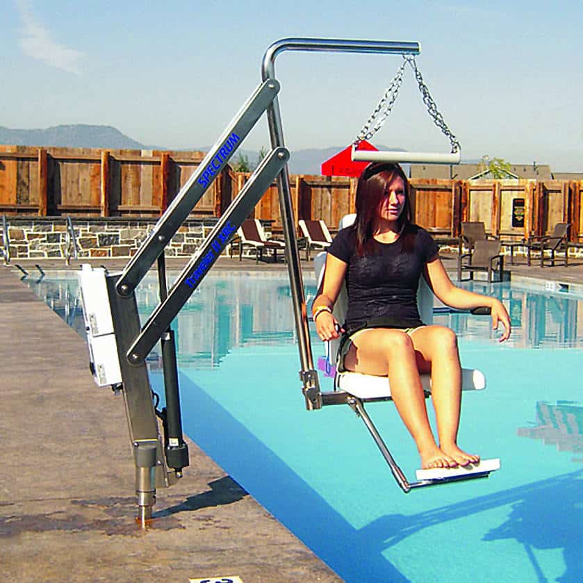 The Traveler 350 Long Reach pool lift is designed for use on in-ground and above ground pools and spas. This robust lift features a lifting capacity of 500 lbs. and additional features like a transfer bar and swing-out footrest. The Traveler works with setback dimensions of 6″ to 40″ and water draft up to 12″. Designed with longevity in mine the Traveler is made with Electropolished 304L Grade stainless steel construction. Then the lift is coated with Spectra Shield for maximum corrosion protection giving it addition longevity. The lift is rotationally and vertically powered with 360 degree continuous power rotation. Designed to achieve 90 lifts per battery charge, you can expect your lift to last all day. The lift was designed with a proprietary robust operating system and Actuator to outperform the competition and give you the best pool lift experience you can have. Easy to install, even into existing concrete decks. Get your ADA compliant lift from Pool Warehouse today!