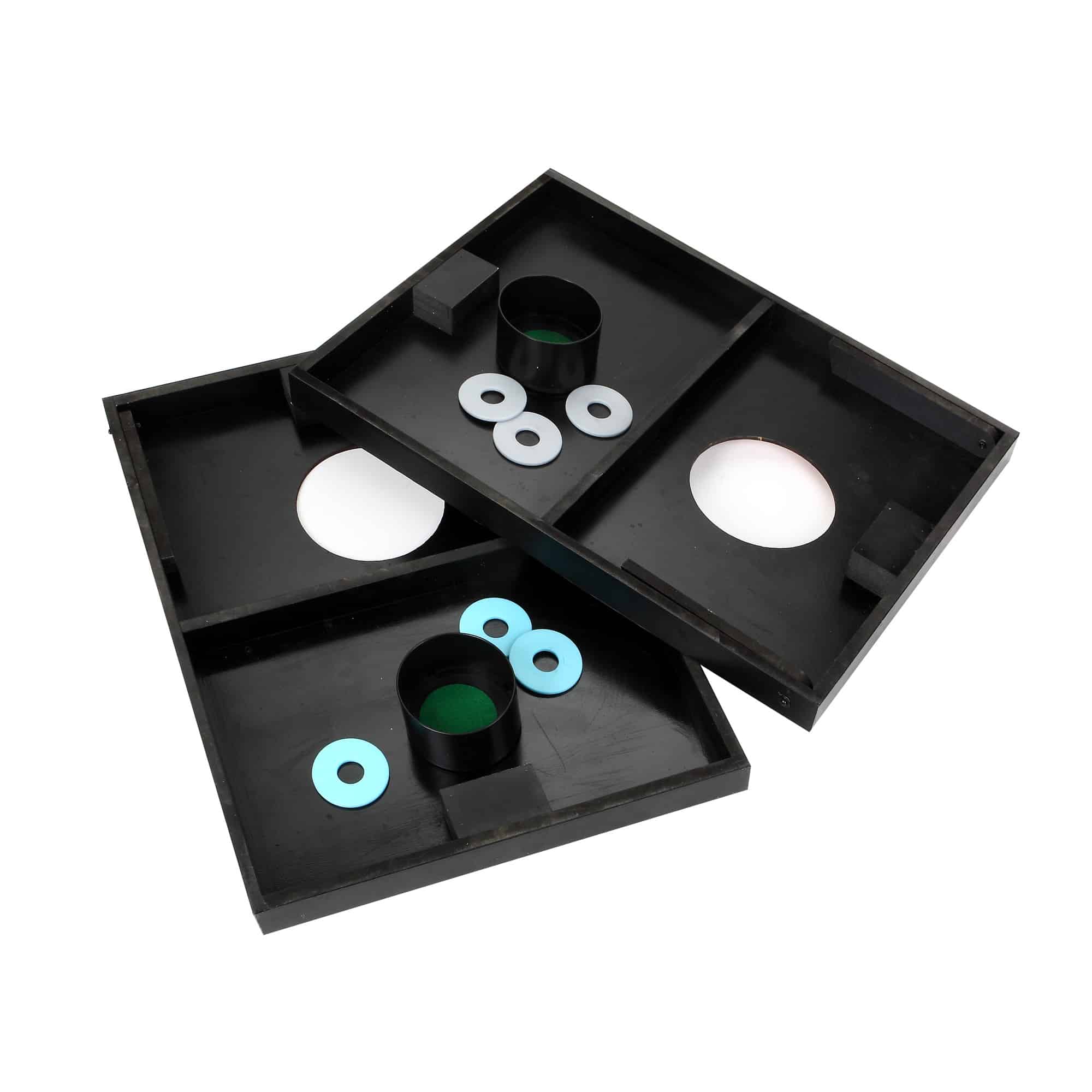 - EASILY PORTABLE – The 3 in 1 Toss Game comes with a heavy-duty, rip-resistant black nylon bag for convenient storage and transportation. Rope handles allow you to easily move it around your yard.