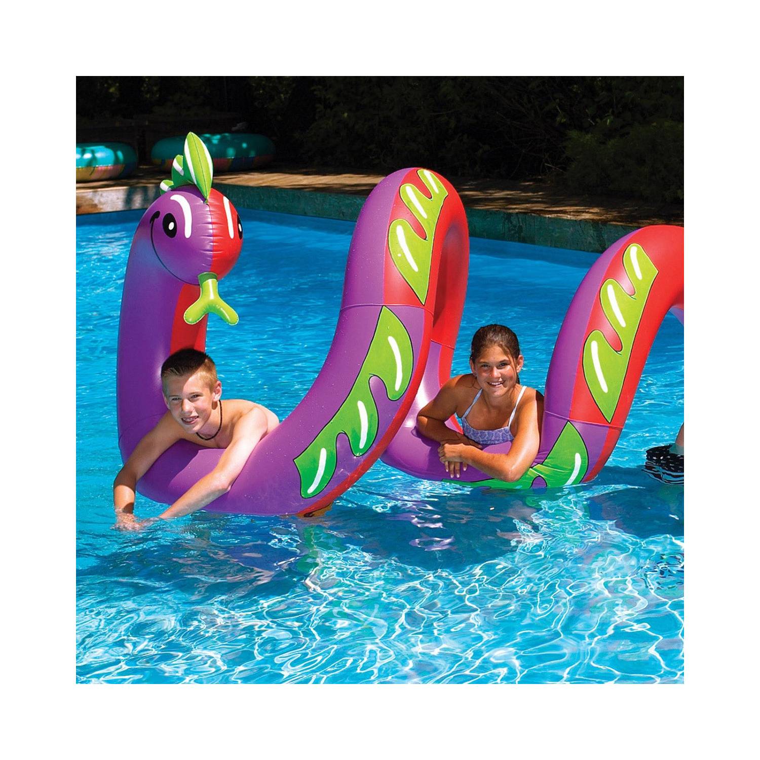 The elongated, curly design provides generous space for comfortable lounging or interactive play. Balanced proportions help maintain steady flotation, allowing smooth movement across the water. The sculpted form supports relaxed positioning while enhancing the dynamic look of the serpent, making this float as functional as it is visually engaging.