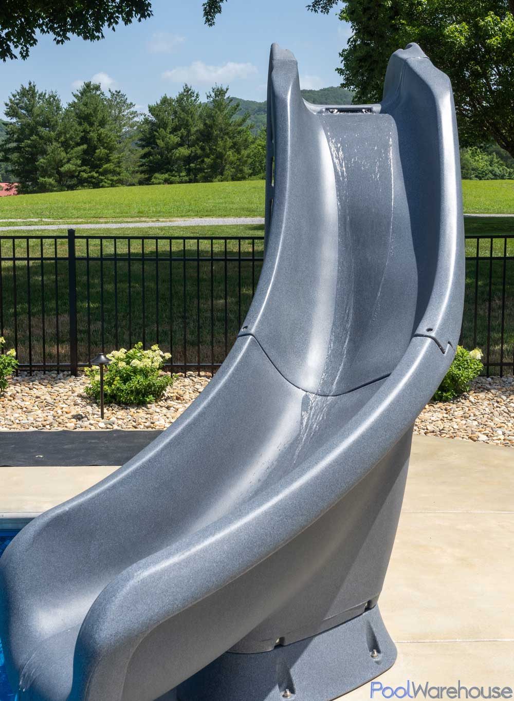 This full-sized addition to our rotomolded slide line (heliX, TurboTwister and Cyclone) stands 7’4″ tall to the top of the handrails and is available in sandstone and gray granite. Enclosed ladder and molded handrail design for maximum safety. Our unique GrandRapids water delivery system offers lots of rushing water for a fun ride. This slide can be added to swimming pool kits sold by Pool Warehouse!