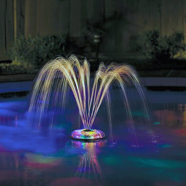 This amazing Underwater Light Show & Fountain does it all! It floats, spins & sprays colors above and below the water. The small light and fountain show is battery operated so there are no hose hookups to restrict movement and the beautiful dancing water show will float freely around your pool. Features 1-hour auto shut-off. No installation needed, requires four D batteries (not included). Put this little unit to work in your pool and start enjoying the twirling, dancing water and light show!