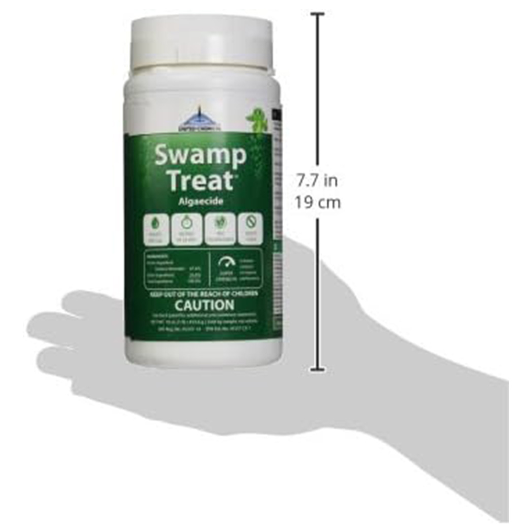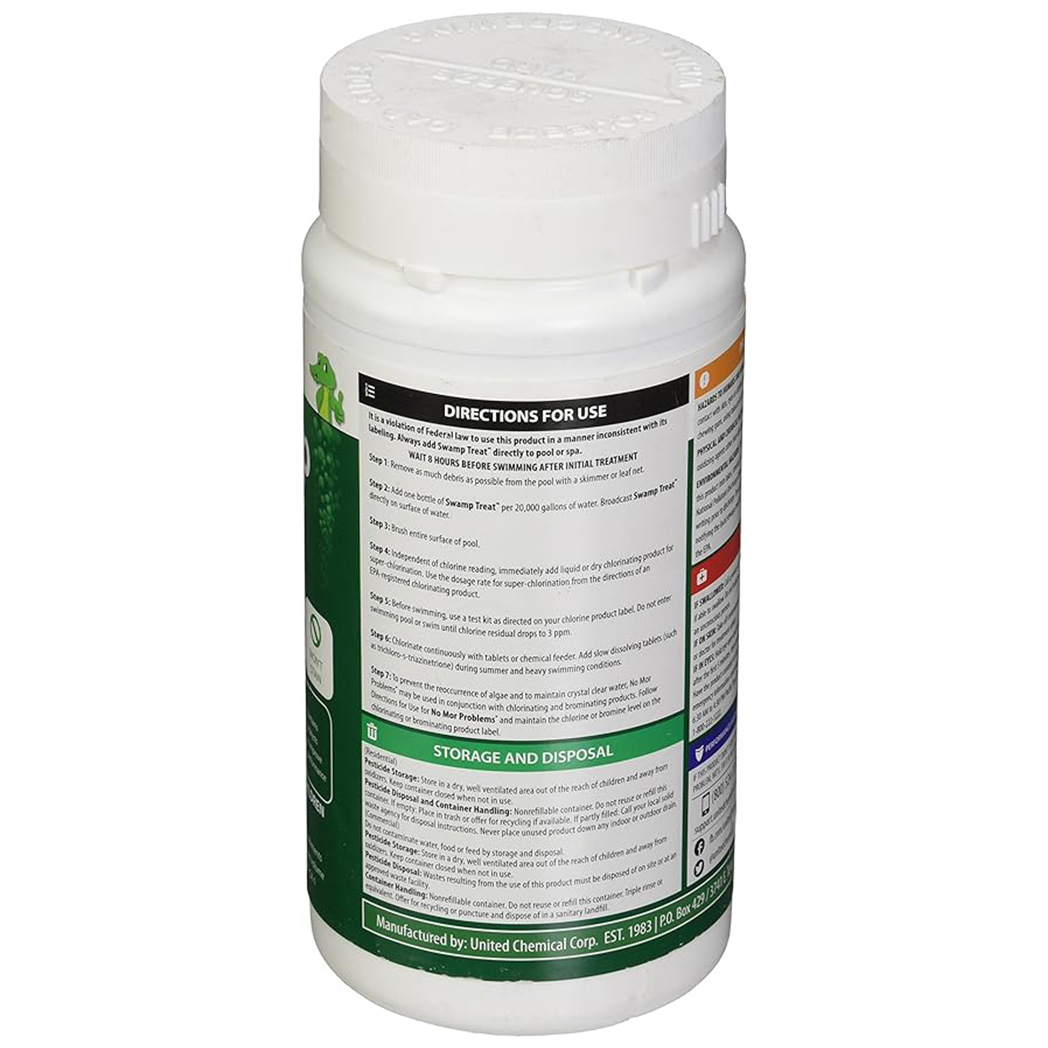 The United Chemical Swamp Treat Algaecide is a powerful solution for transforming severely algae-infested pools, available in a case of twelve 1-pound containers. This potent algaecide rapidly clears green, black, and yellow algae, turning murky water into a crystal-clear oasis. Its fast-acting formula is compatible with all pool types and works effectively even in heavily infested conditions. Easy to apply, it provides a quick and effective solution for reclaiming your pool from algae blooms. With United Chemical Swamp Treat Algaecide, you can restore your pool to its original clarity and cleanliness.