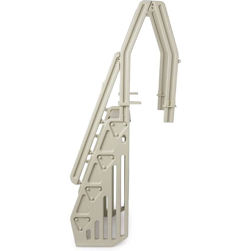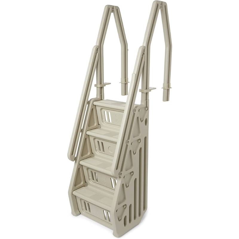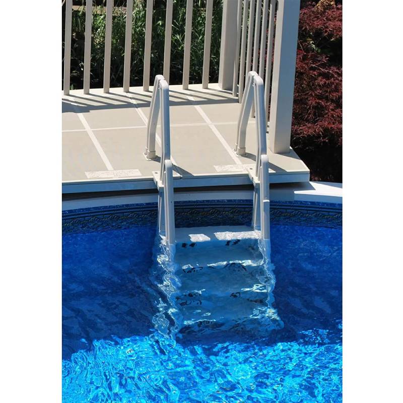 - In-pool step ladder with double handrails set 24 inches apart to offer a sturdy support when getting up out of the water.