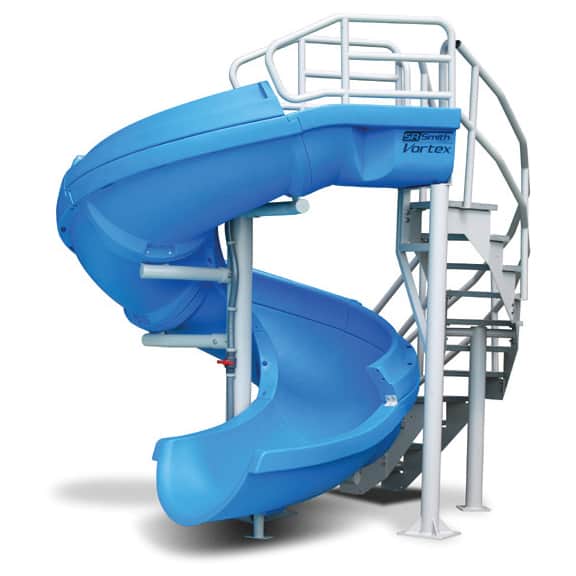 The Vortex Swimming Pool Slide is a multi-market, open- or closed-flume slide is available with a ladder or a spiral staircase – you decide! The flexibility of this slide is perfect for commercial or high-end residential applications. The high-volume water delivery system gives you up to 30 gallons of water per minute.