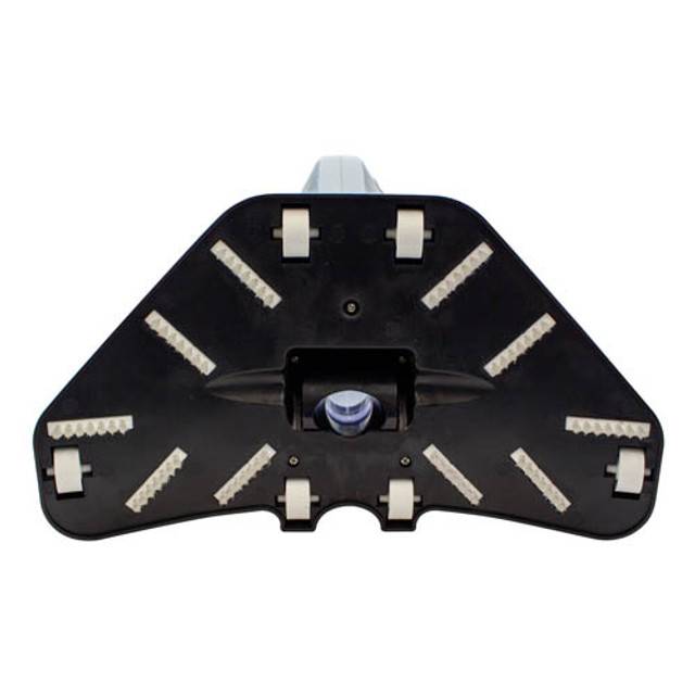 - 12.75-inch vacuum head with wheels and scrubbing brushes