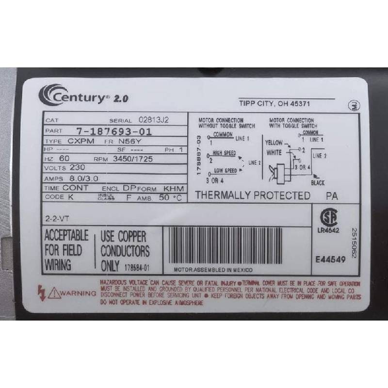 - Two speed motors have four sets of insulated windings for increased efficiency.