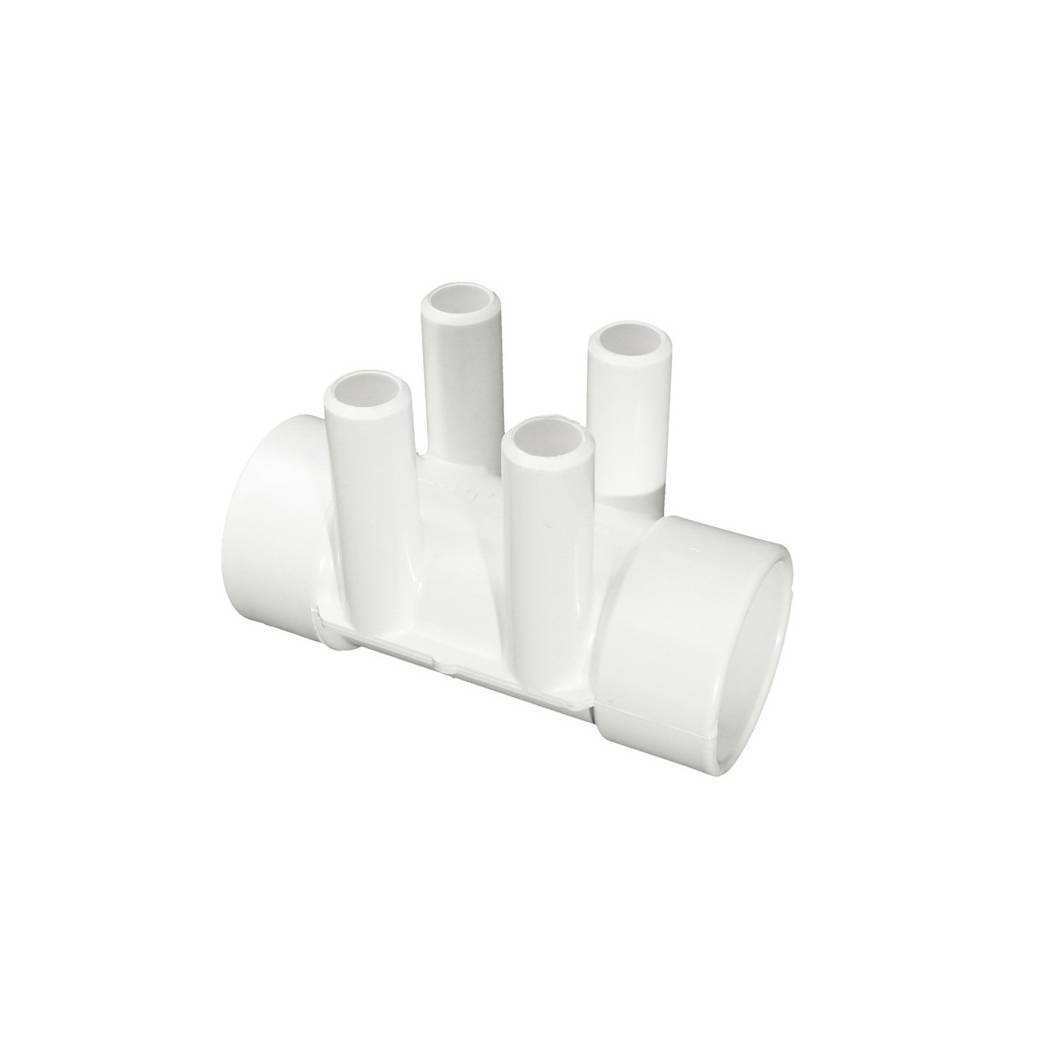 The Waterway 1.5″ Slip 4-Port Manifold is designed to efficiently distribute air or water flow in spa and pool systems. Featuring four 3/4″ slip ports, this manifold provides reliable connections to multiple components, ensuring even distribution. The 1.5″ slip connection ensures compatibility with standard plumbing setups, while the manifold’s durable, corrosion-resistant materials guarantee long-lasting performance. Easy to install, this manifold is perfect for maintaining smooth water or air flow in both residential and commercial spa systems.