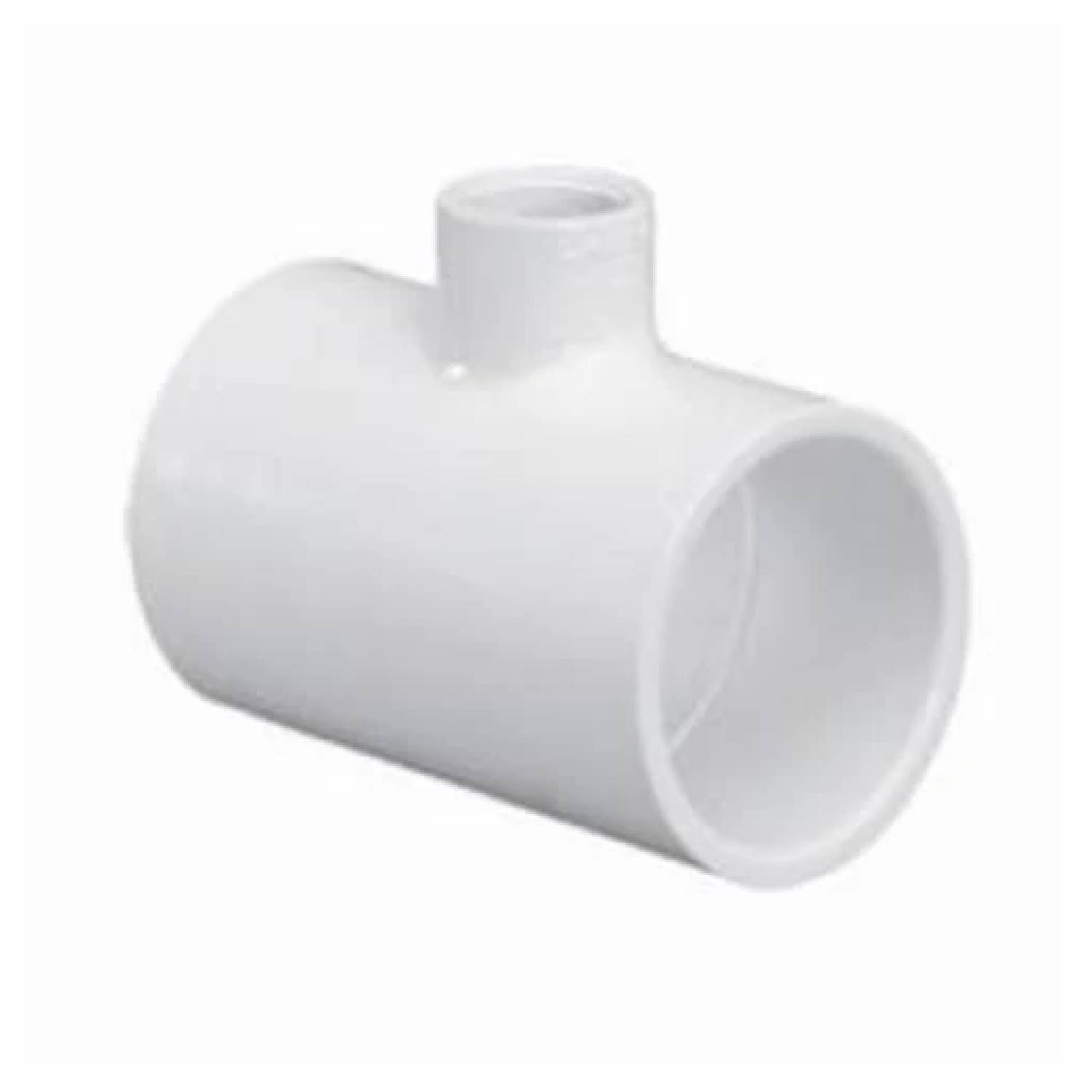 The fitting features three socket (slip) connections—1 inch for the main line, 1 inch for the opposite branch, and 0.5 inch for the reduced branch. Each connection is designed for secure solvent-weld installation with compatible PVC pipe. Solvent-weld joints form a permanent, leak-resistant seal, maintaining system integrity over time. Precisely molded sockets and smooth internal surfaces allow proper pipe insertion, even cement distribution, and uniform alignment, resulting in strong, long-lasting joints.