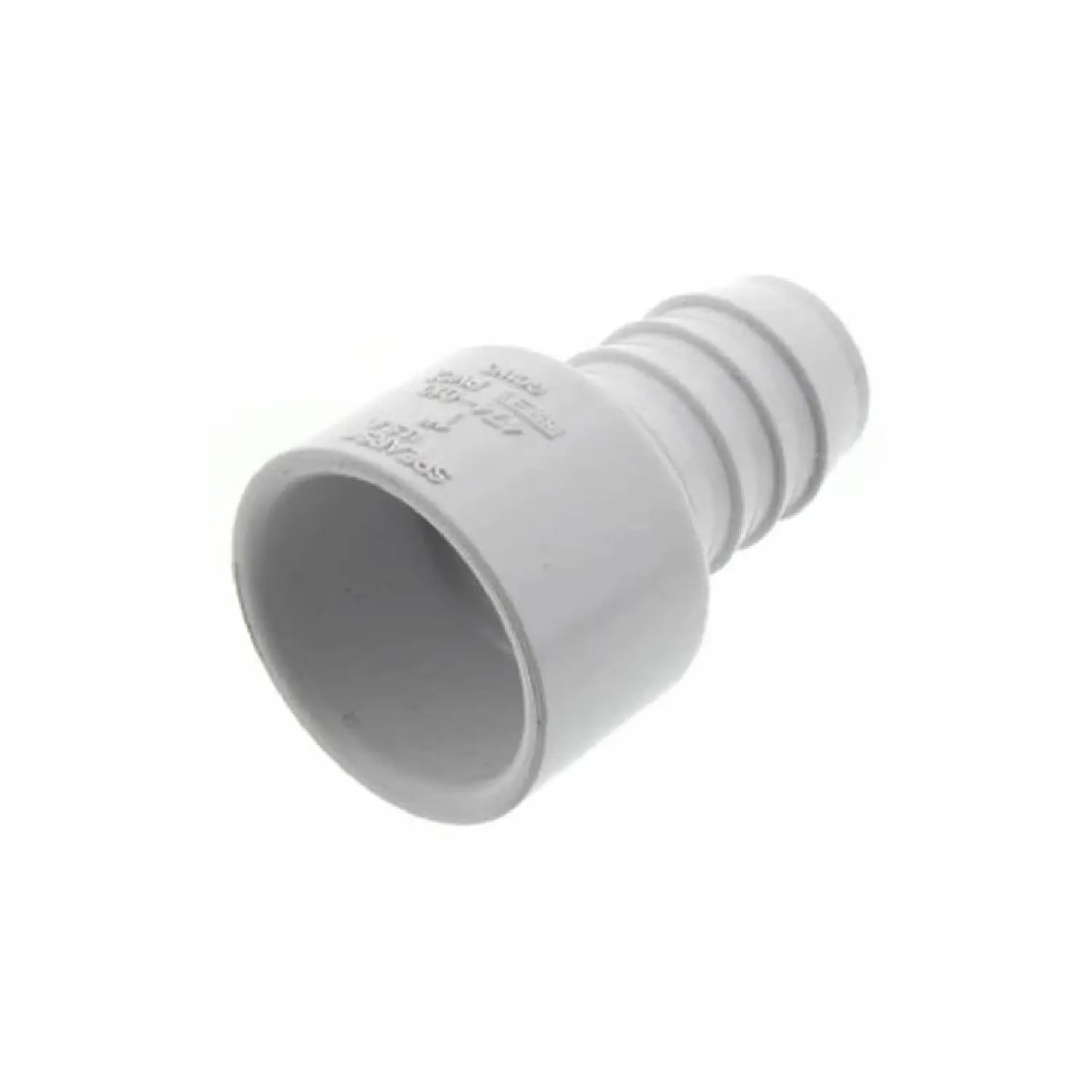 The 474-010 adapter is constructed from Schedule 40 PVC, known for its durability and resistance to corrosion, making it suitable for various fluid handling applications. The barbed insert end ensures a tight seal with flexible tubing, preventing leaks and ensuring a secure connection. The slip socket end allows for easy installation onto rigid PVC pipes, providing a reliable and leak-free joint when used with appropriate solvent cement.