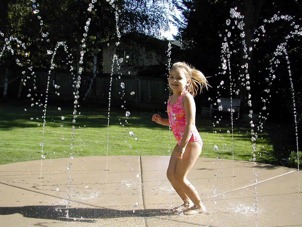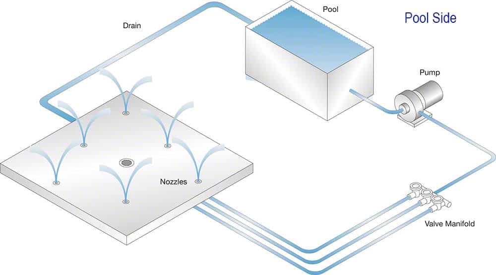 The WetDek Pool-Side Splash Pad pool kit is a great complement to a new construction or existing pool. This zero-depth backyard splash pad requires minimal yard space and can be used as a splash pad to play in – fun for kids and animals, or as an eye-catching water feature. The poolside kit adds an extra element of fun to the pool. Multiple jet configurations are available and make it fully scalable and customizable – make it a square, a circle or even a kidney. The Pool-Side WetDek kit includes jets, valves, drain and preprogrammed controller that allows for four distinct water play programs that keep the jet action inviting. Does not include piping runs or surfacing material.