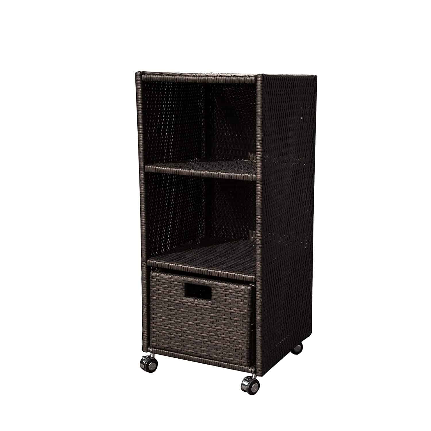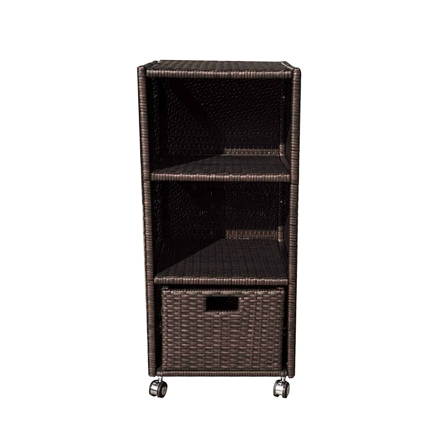 Wheeled Wicker Tower Shelf Features: