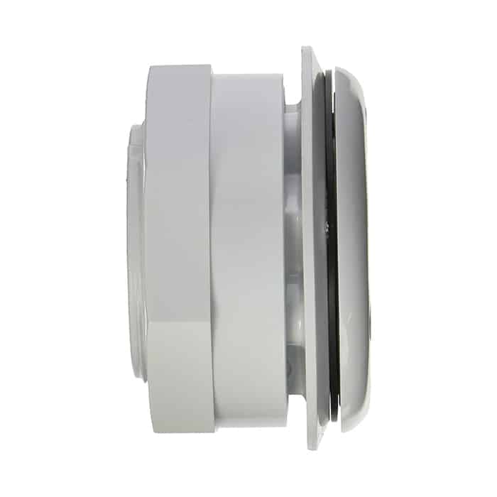 The White Hayward Inground Vinyl Return Inlet Fitting is for use with a vinyl swimming pool. Inlet fitting is made of heavy-duty ABS construction. It includes gaskets, locking ring and stainless steel screws. Also comes with combo locknut/spacer and with face thread in body. Pipe measures 1-1/2 by 1-1/2-inch FIP.