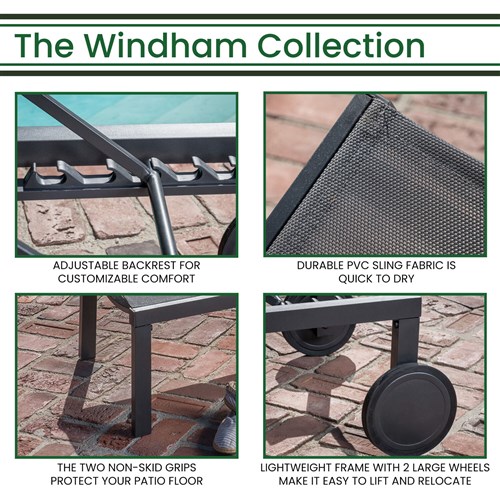 Whether you’re lounging in the sun or drying off by the pool, the Windham chaise is the perfect addition to your outdoor space. Both robust and reliable, this lounge chair is constructed with durable sling fabric over a rustproof aluminum frame. Available in three different color combinations, this chaise will add another level of comfort to your outdoor living space. It features an adjustable backrest that allows you to alter its angle to your most relaxed position. The all-weather sling fabric is both UV and water-resistant, proven to maintain its strength under any weather condition.