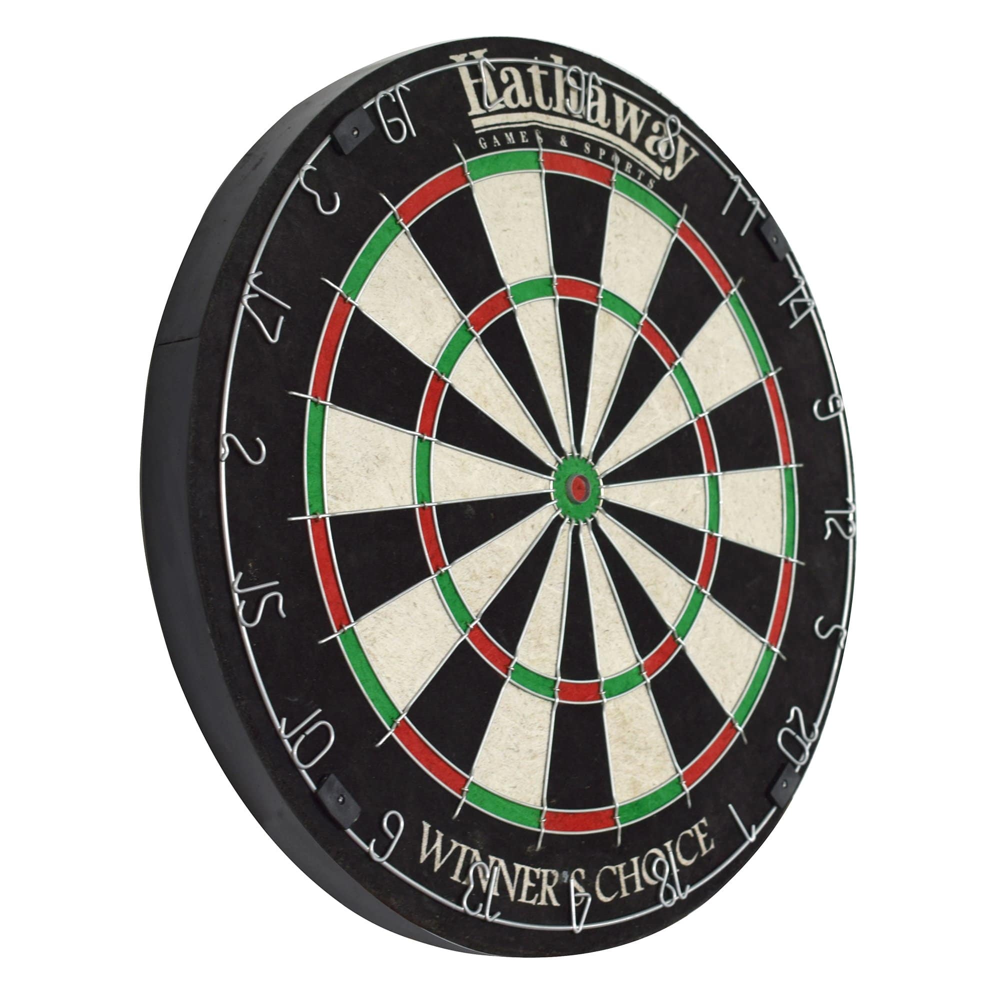 Enjoy a quality game of darts with the Hathaway Winners Choice sisal dartboard. Made of superior grade, self-healing sisal fibers, this tournament style dartboard features a moveable metal number ring so you can easily rotate your board and extend playing life. This game table features round-shaped wires and a staple-free bull’s-eye to reduce bounce-outs and deliver maximum performance for your dart game. A great board to play on for any experience level. 180-day limited warranty.