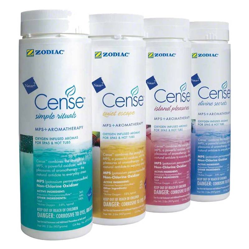 The Zodiac W25003 is a case of 2 pound Nature2 Cense, in fragrant Divine Secrets, which gives spa owners an effective MPS (mono per sulfate) shock treatment that offers a combination of water clarity and aromatherapy with no chlorine odors. Nature2 Cense MPS shock is a powder product that will remove contaminants from your spa water, bringing back the crystal clear water quality you remember without adding anymore chlorine to your system. Active Ingredients of the Nature2 Cense: 36% Monopotassium Peroxymonosulfate, 54% Other Ingredients.